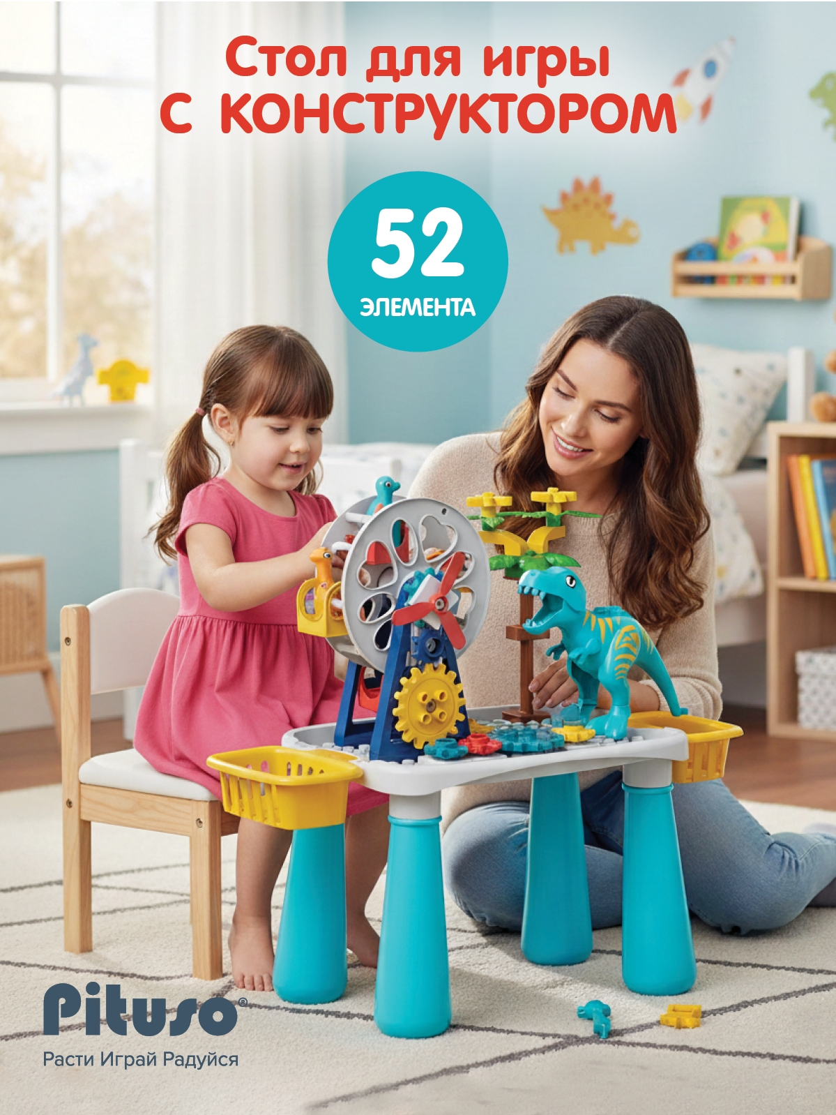 Стол для игры Pituso с конструктором 52 элемента