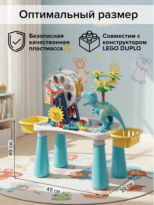 В наборе: стол для конструирования + конструктор 52 элемента.