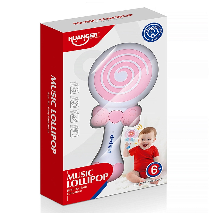 Игрушка погремушка «КАРАМЕЛЬКА» со светом и звуком.