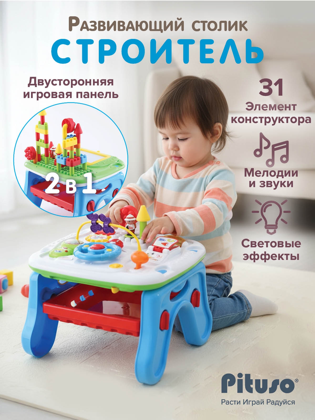 Развивающий столик Pituso Строитель (свет,звук)