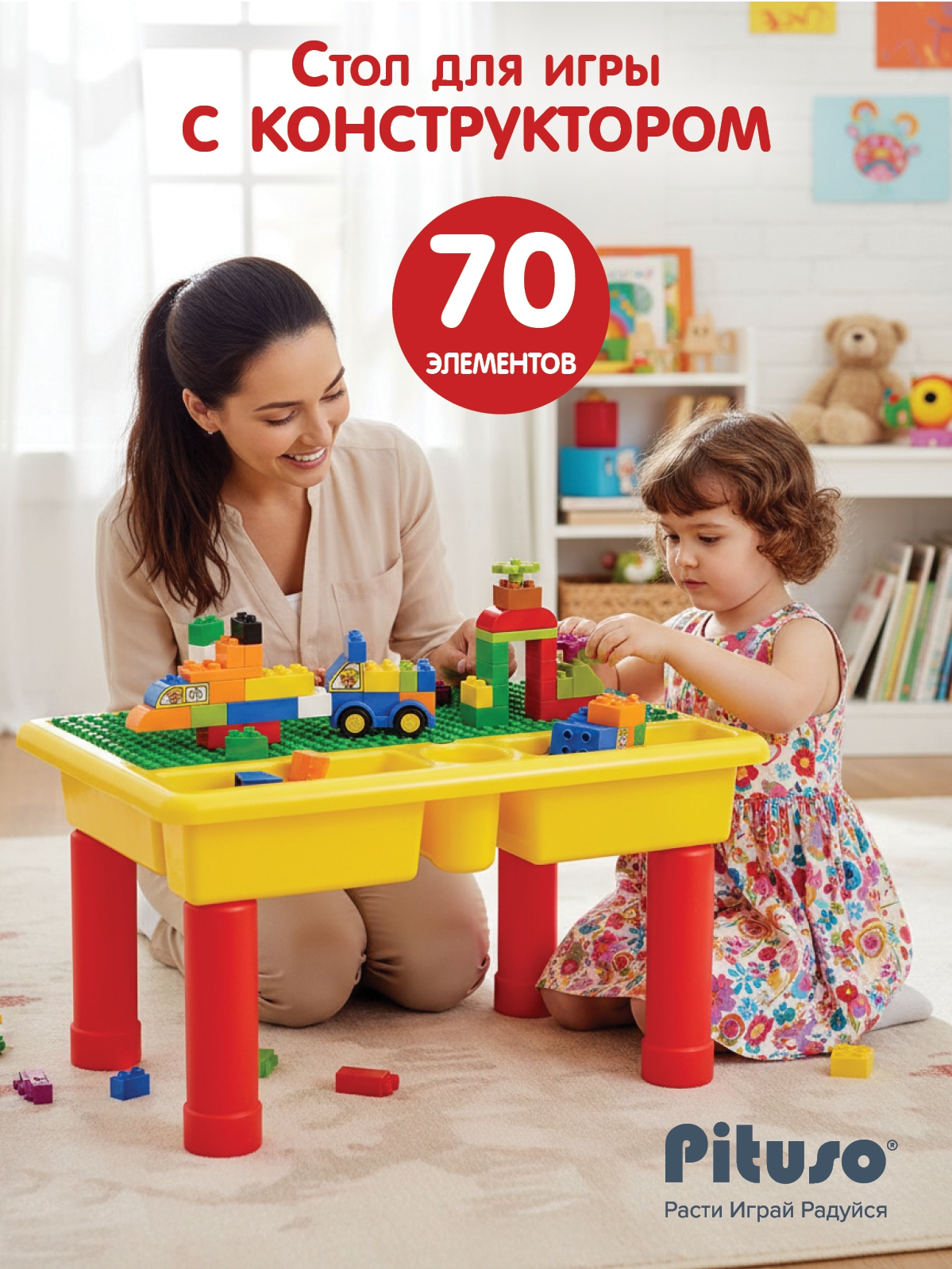 Стол Pituso для игры с конструктором в комплекте (70эл.)
