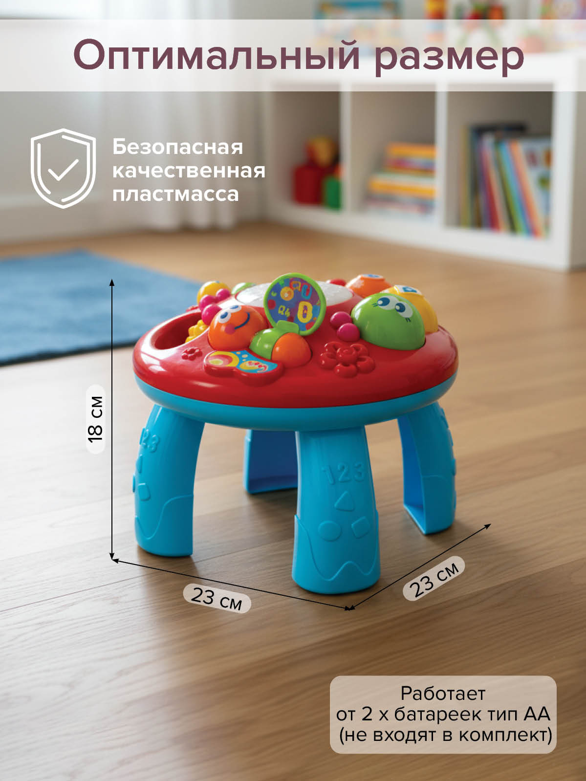 Игровой центр имеет эргономичную форму, удобную для держания детскими ручками.