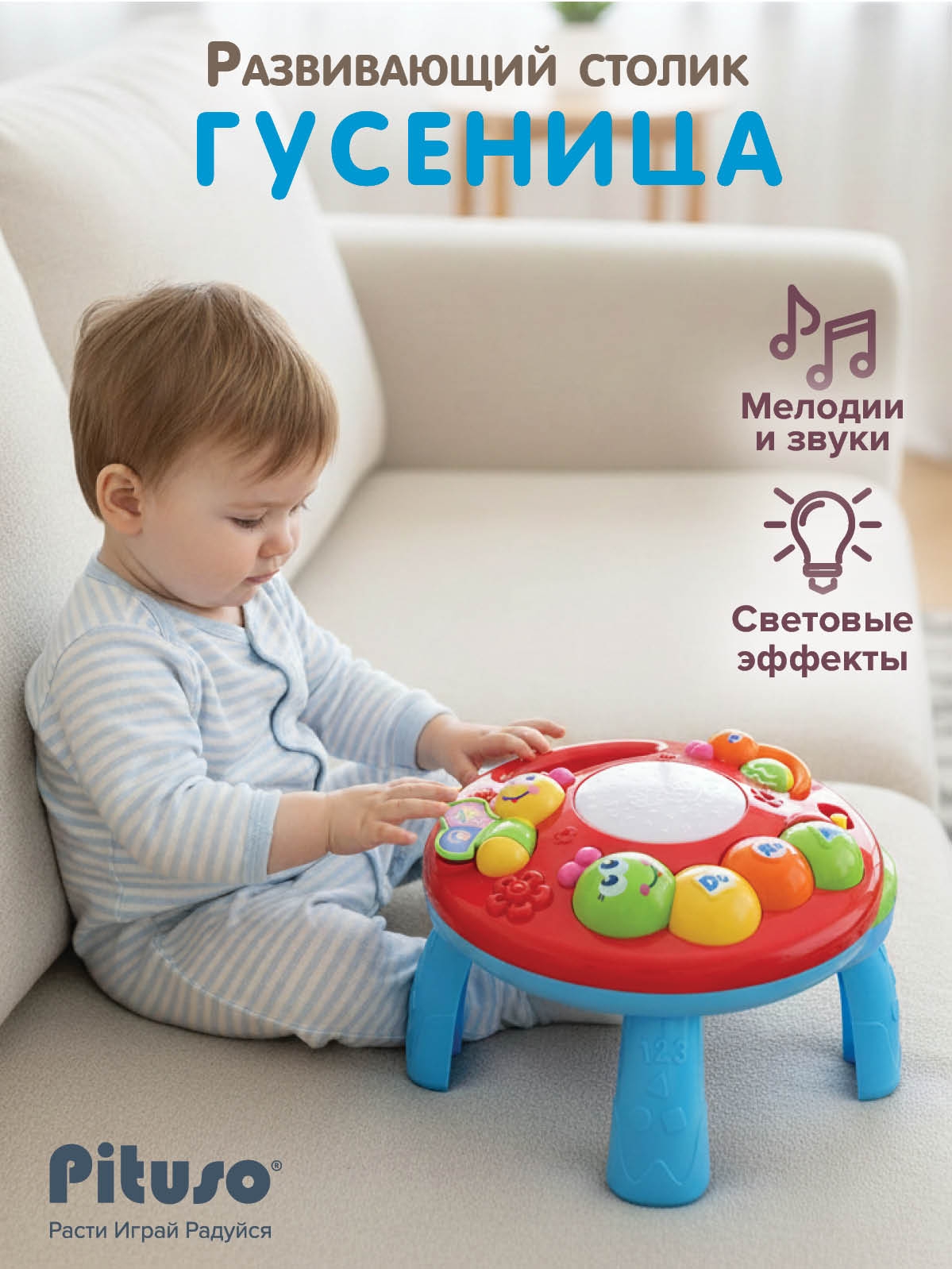 Развивающий столик «Гусеница» с веселыми мелодиями и звуками.