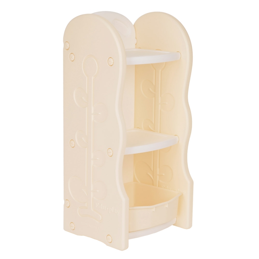 - Приятные светлые оттенки стеллажа помогут ему легко вписаться в интерьер детской.