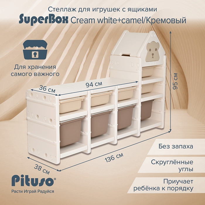 Стеллаж для игрушек Pituso с ящиками SuperBox Сream white+camel/Кремовый