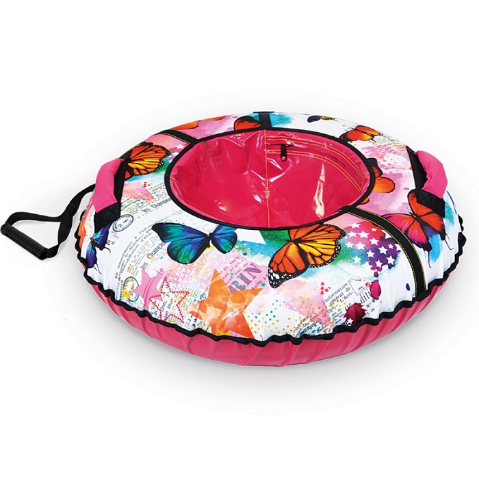 Красочный тюбинг из принтованной ткани подарит незабываемые впечатления от зимней прогулки. Водонепроницаемая ткань из которой изготовлена верхняя часть изделия, создаст дополнительное сопротивление и не позволит выскользнуть из тюбинга. А благодаря высококачественной тентовой ПВХ ткани с глянцевой поверхностью, из которой исполнено дно этой модели достигается идеальное скольжение. Усиленная камера входит в комплекте.