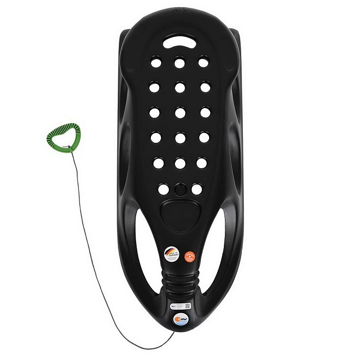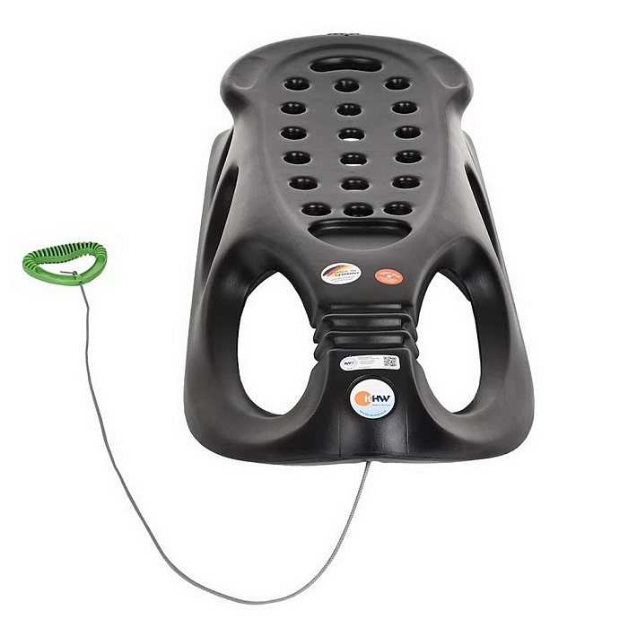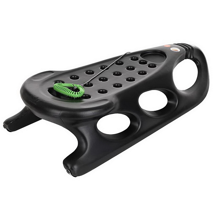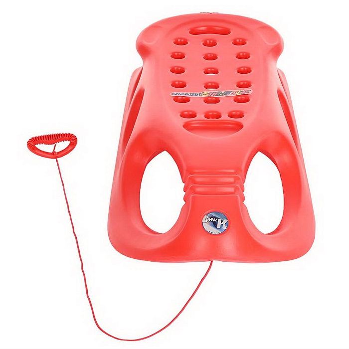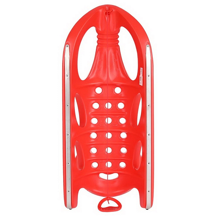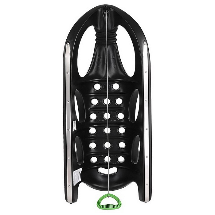 Снизу расположены металлические полозья, которые улучшают скольжение и защищают санки от повреждений.