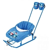 Материал: каркас – металл; сидение – рейки; ремень безопасности – ременная лента; колеса – морозостойкая пластмасса