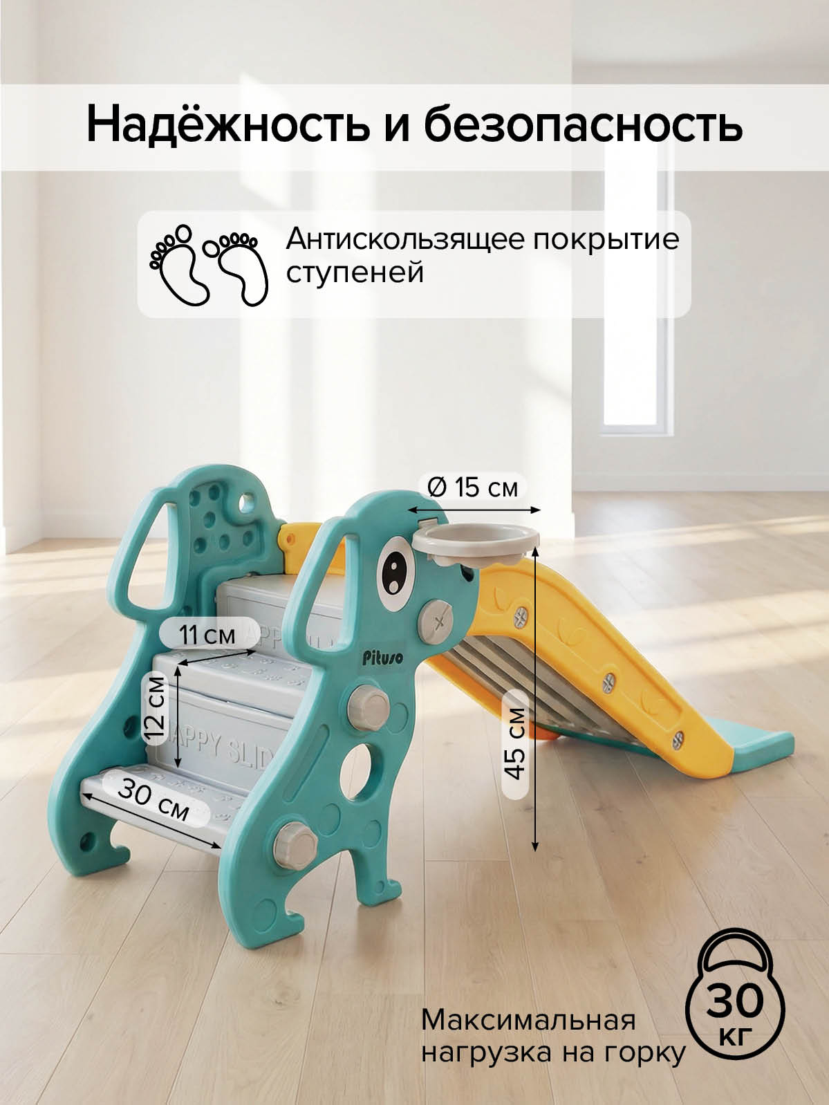 - Назначение: первые попытки катания с горки, активные игры и броски мяча в кольцо;