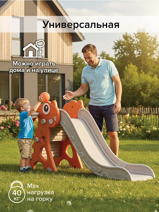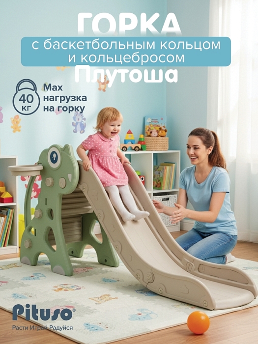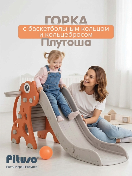 Детская горка Pituso Плутоша с баскетбольным кольцом Red/Красный
