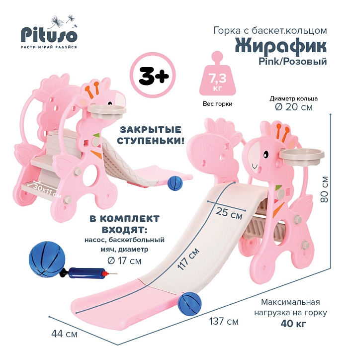 Детская горка Pituso с баскетбольным кольцом Жирафик Green/Зеленый