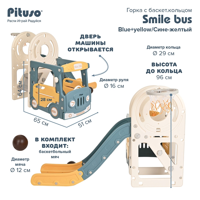 Детская горка Pituso Smile bus Blue-yellow/Сине-желтый