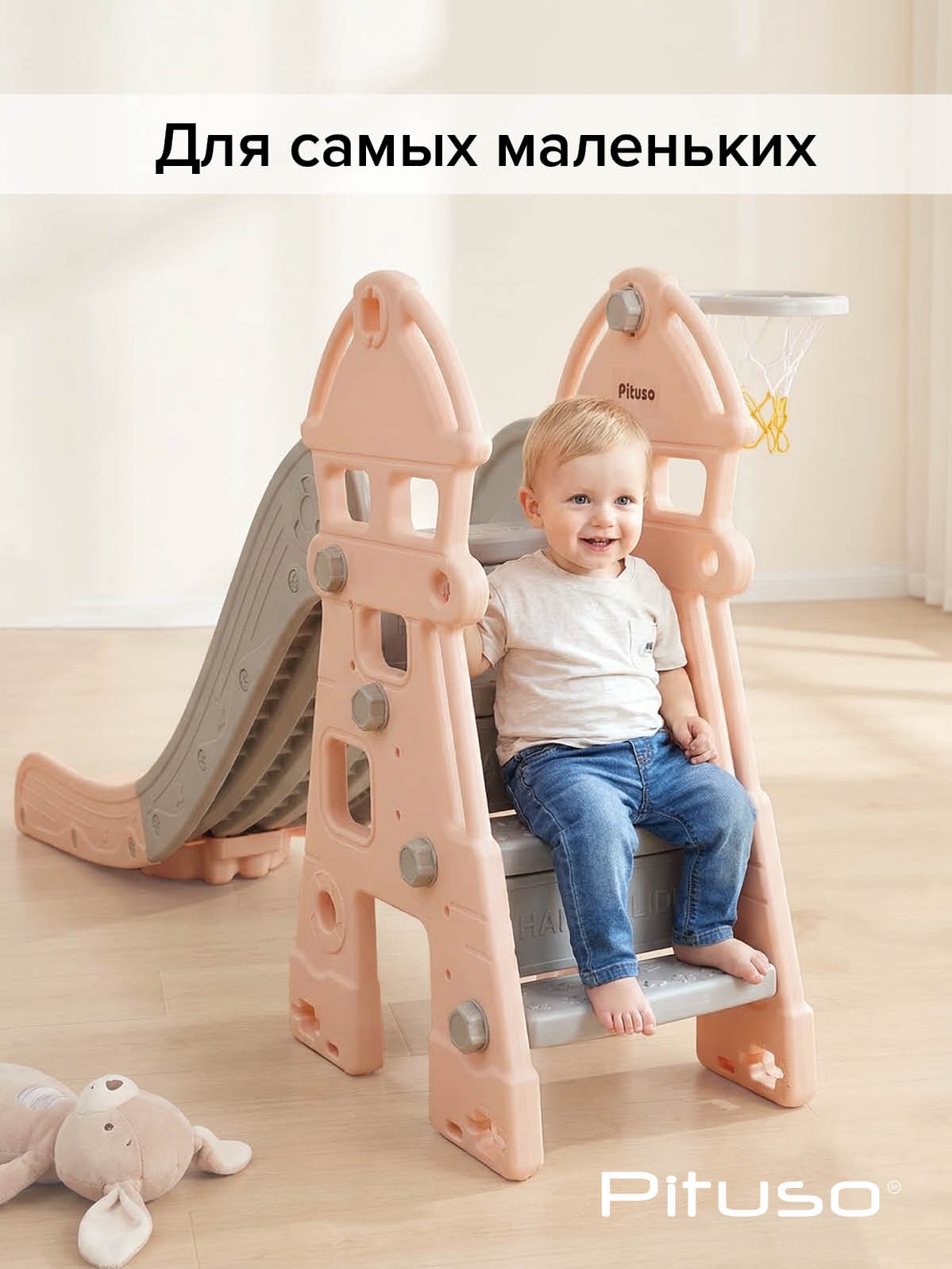 Купить детскую горку Pituso Замок с баскетбольным кольцом бежевую/серую в Москве