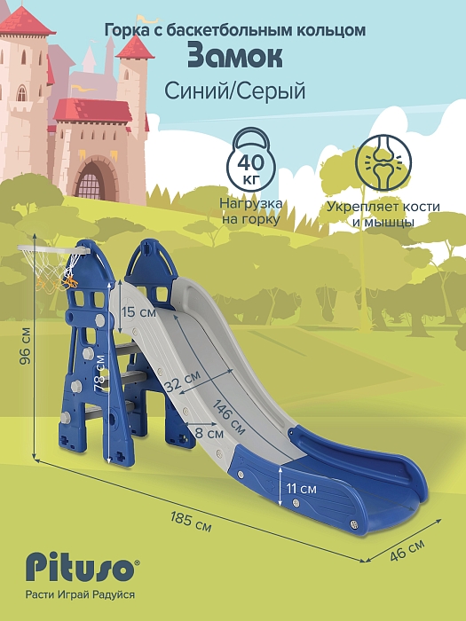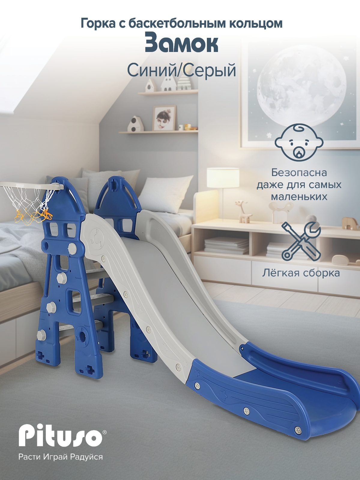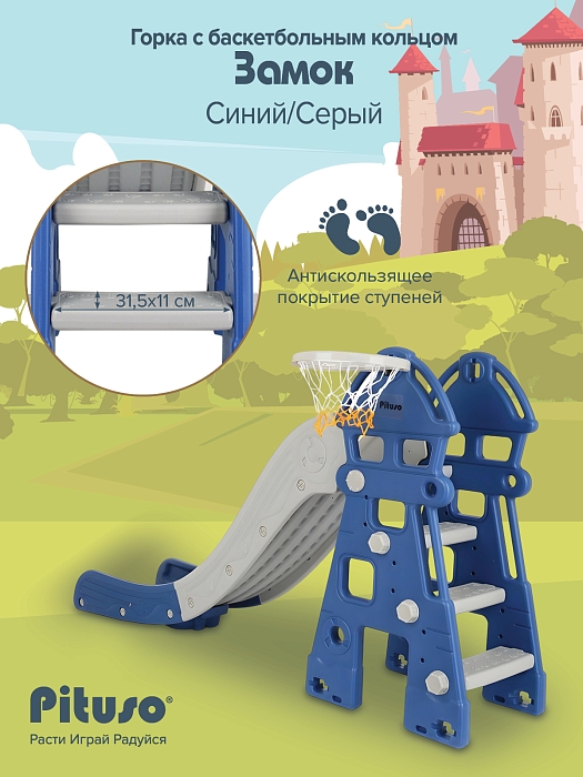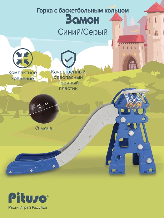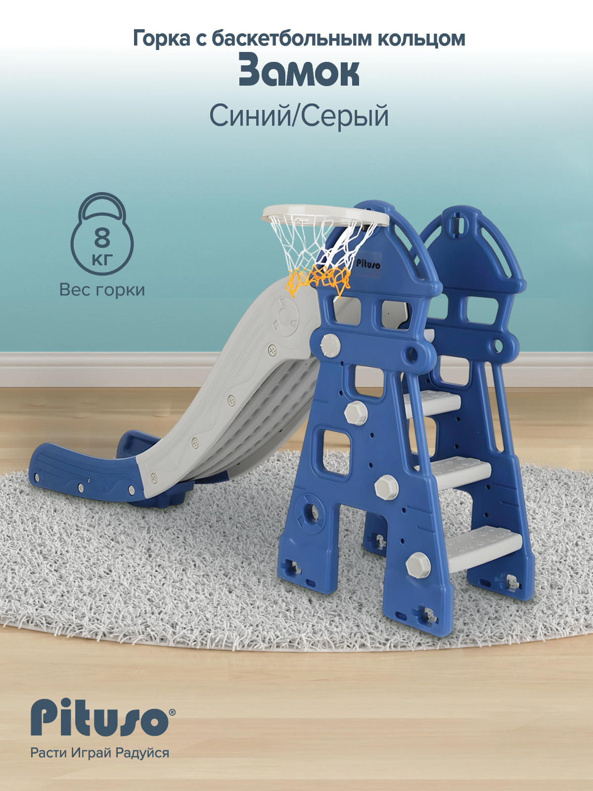 Детская горка Pituso Замок с баскет.кольцом Синий/серый