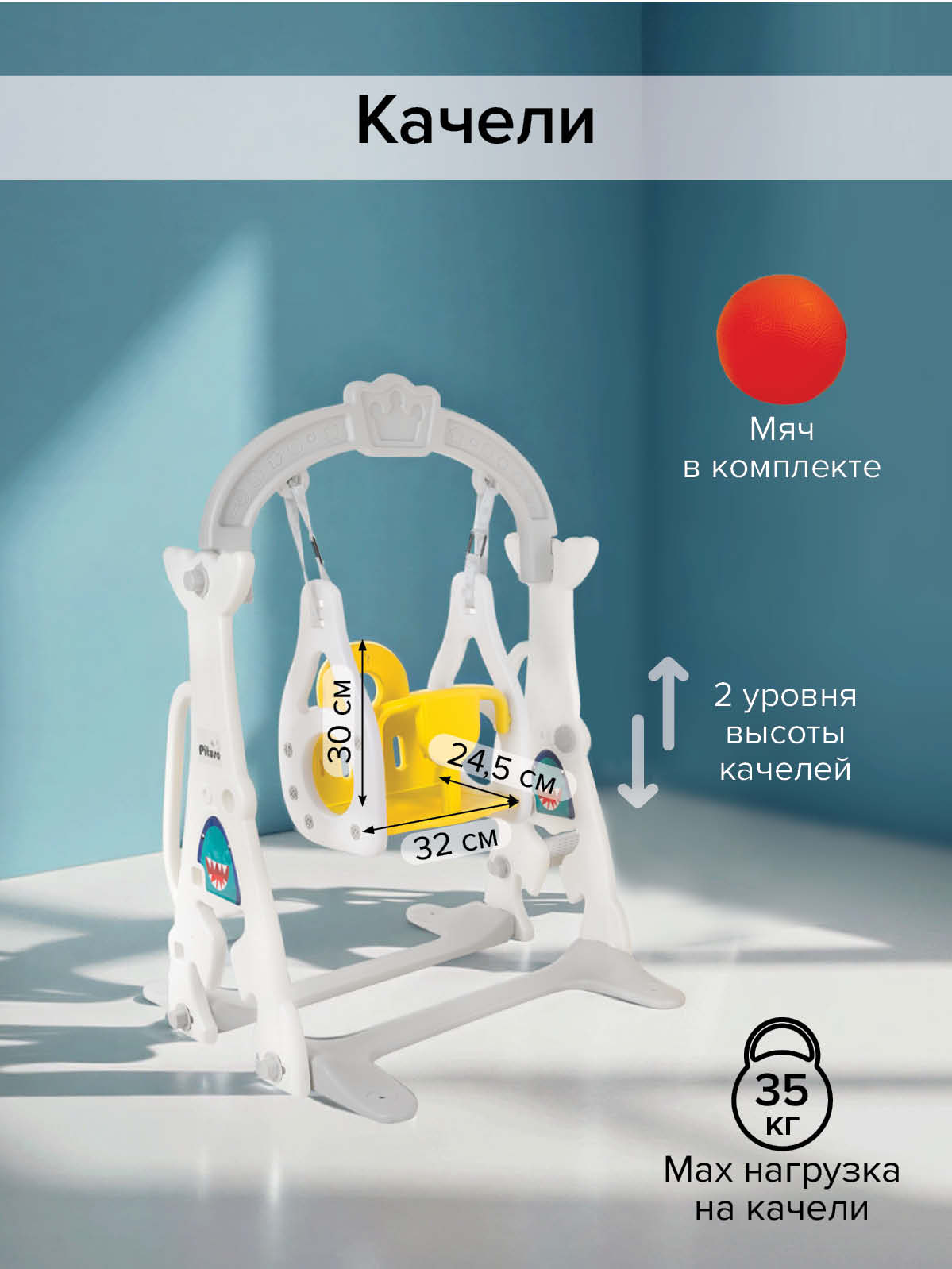 - высота качелей может регулироваться по высоте - 2 уровня;