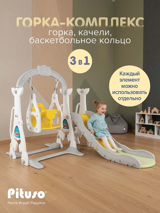 Горка-комплекс Pituso Shark (горка, качели, баскетбольное кольцо) White/Белый