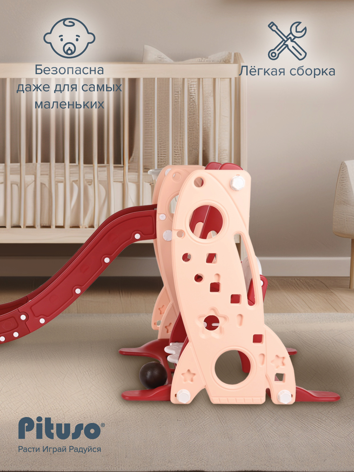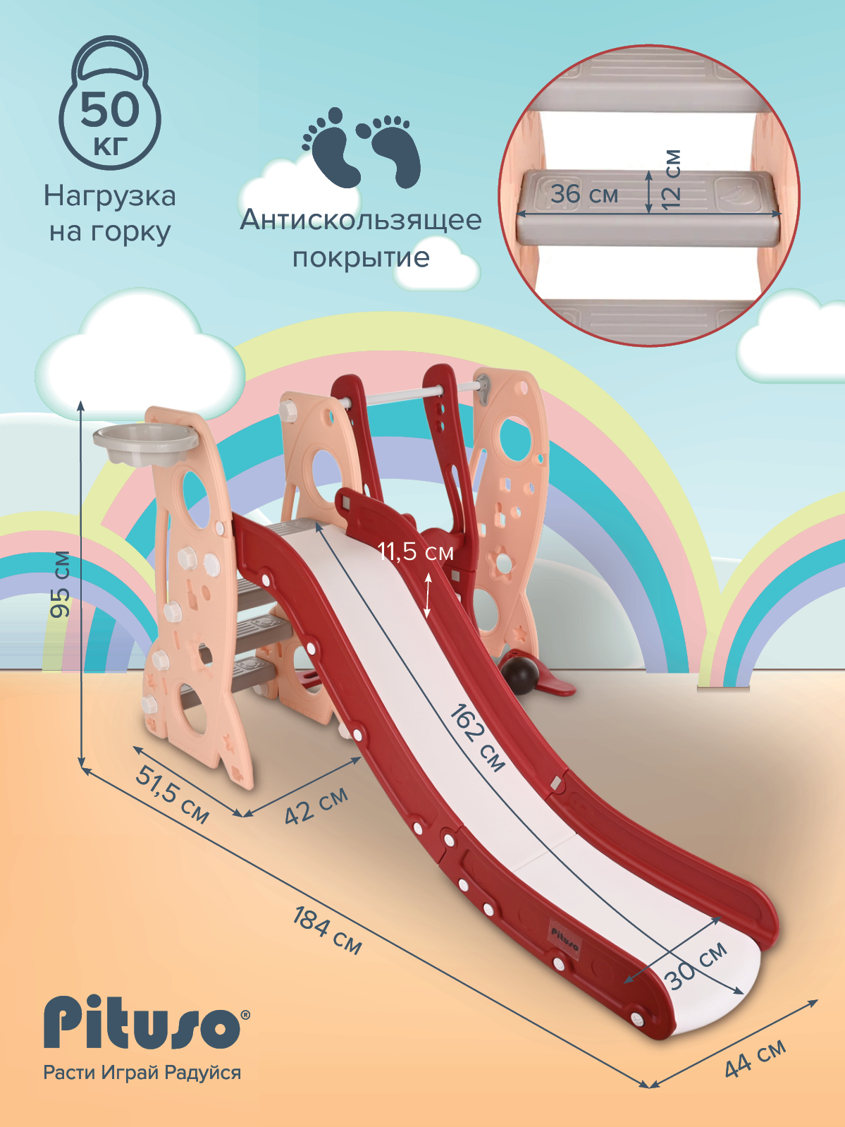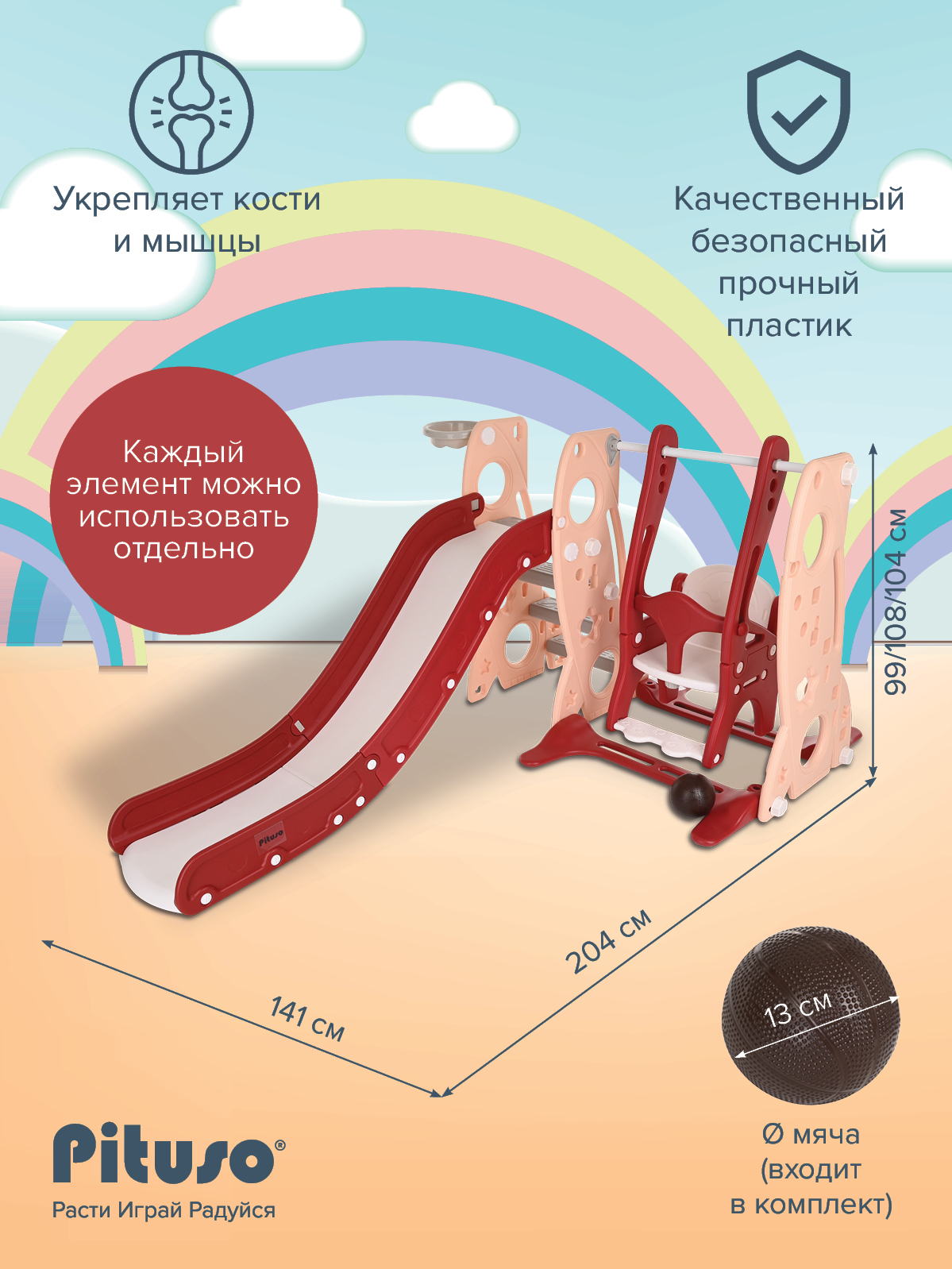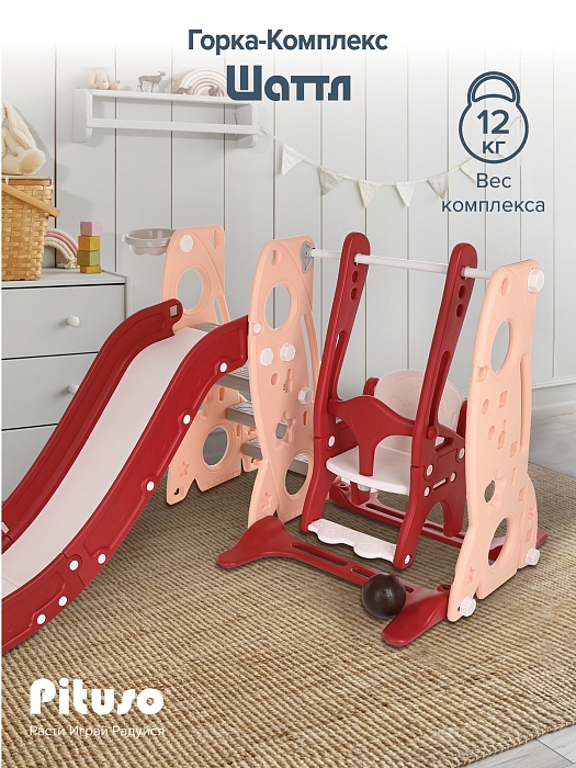 Горка-комплекс Pituso Шаттл (горка, качели, баскетбольное кольцо) Red/Красный