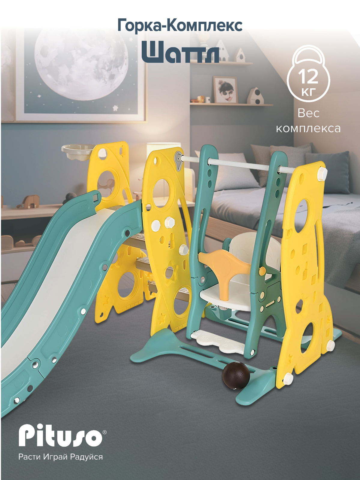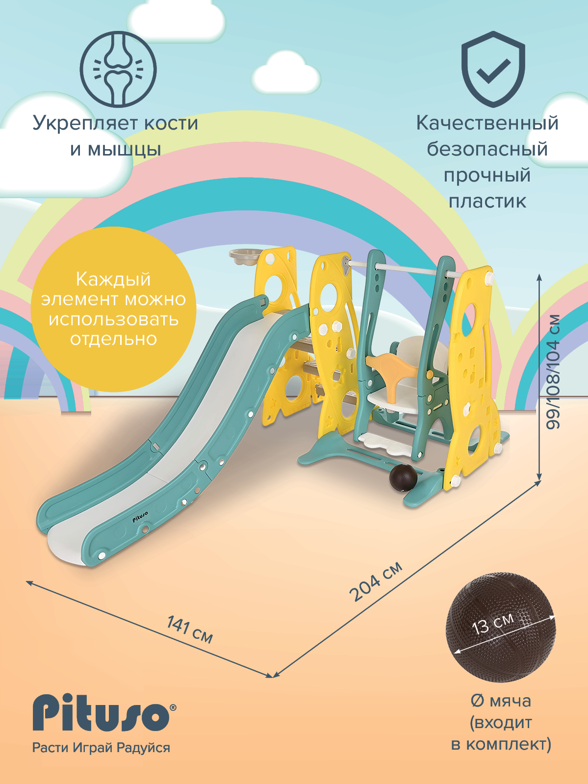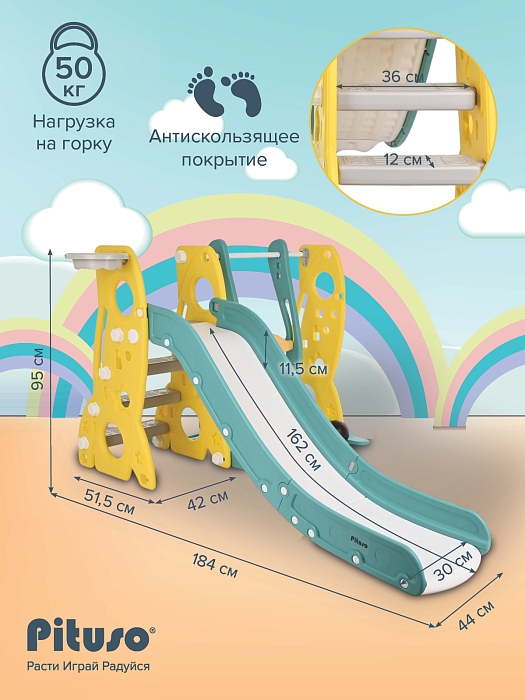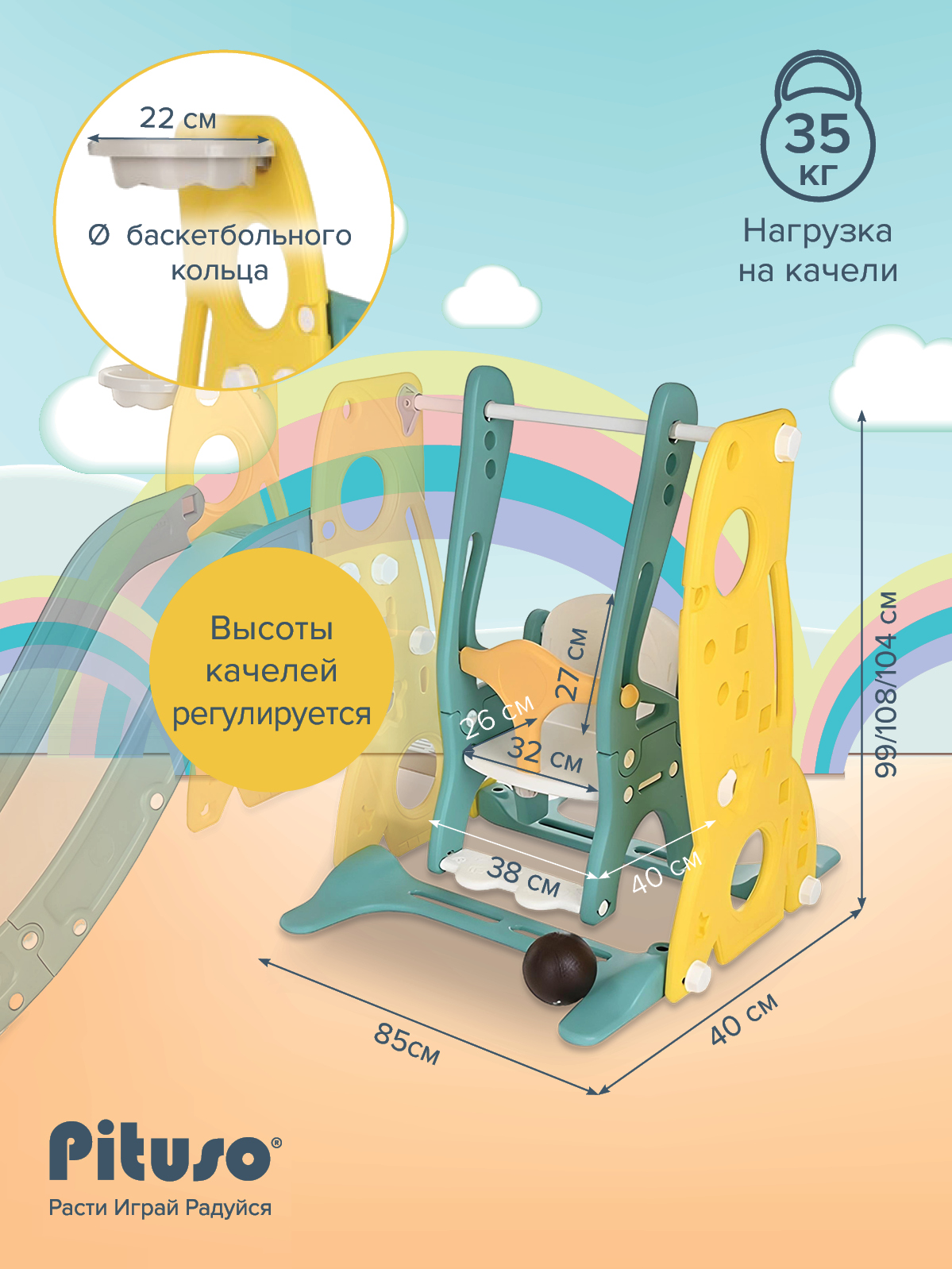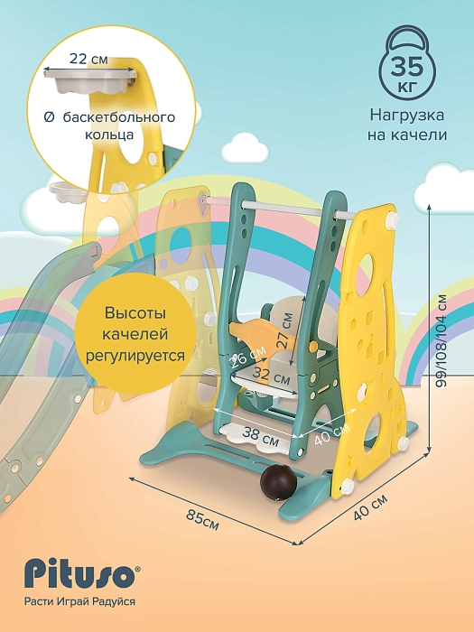 - максимальная нагрузка на горку – 50 кг, на качели – 35 кг