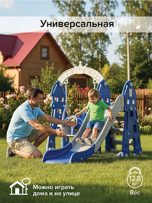 Горка-комплекс Pituso Замок (горка,качели) (звук) Синий/ серый