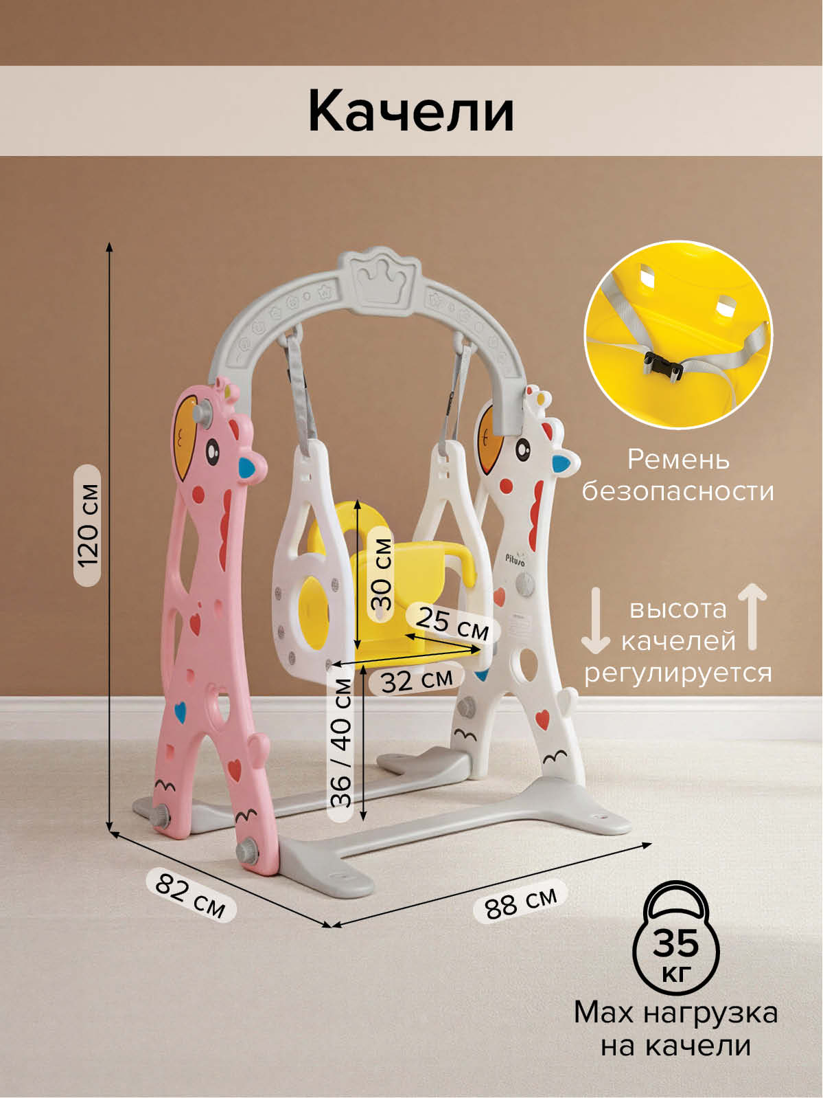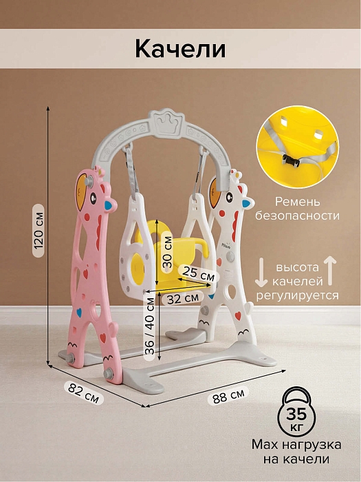 - максимальная нагрузка на горку – 40 кг, на качели – 35 кг
