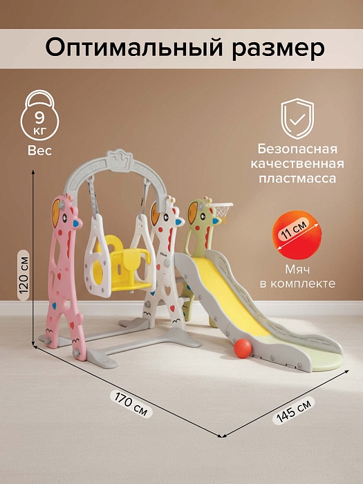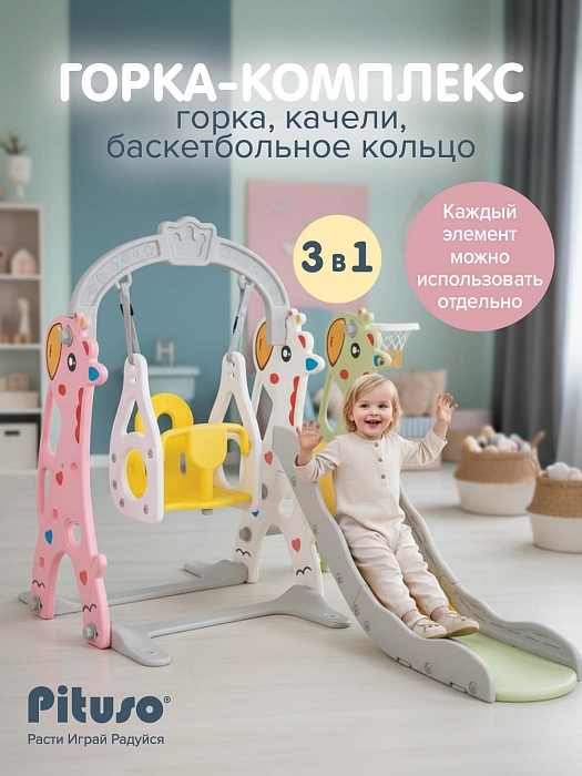 Горка-комплекс Pituso Жирафик Colorful/Цветной (горка,качели,баскет.кольцо)