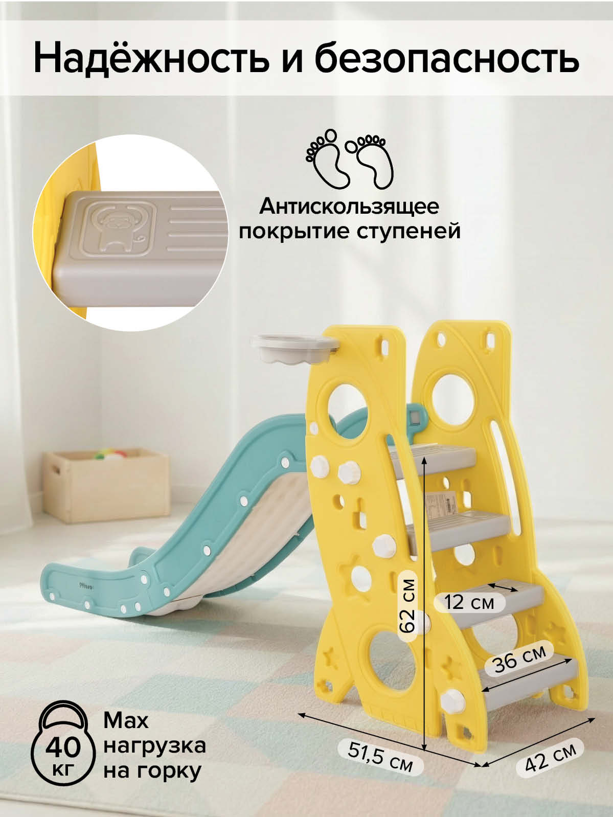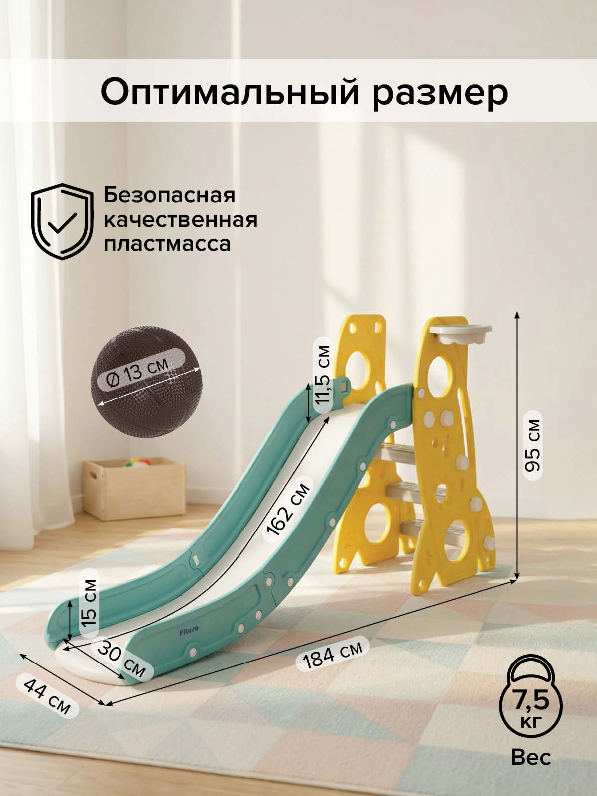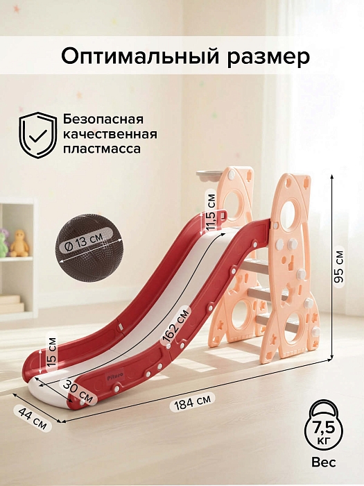 Размер горки: 184х44х95 см