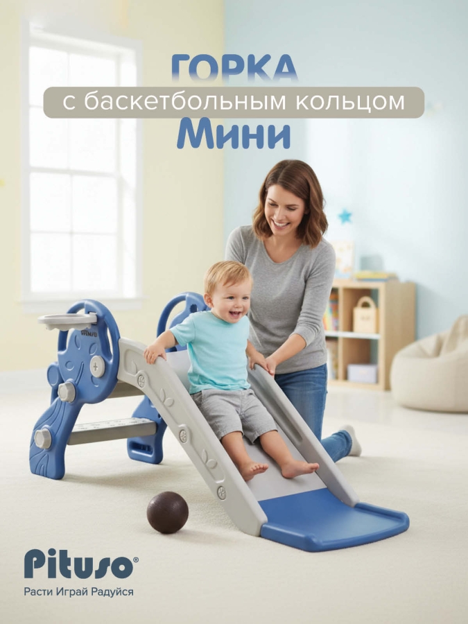 Горка с баскетбольным кольцом Pituso Мини Blue/Синий