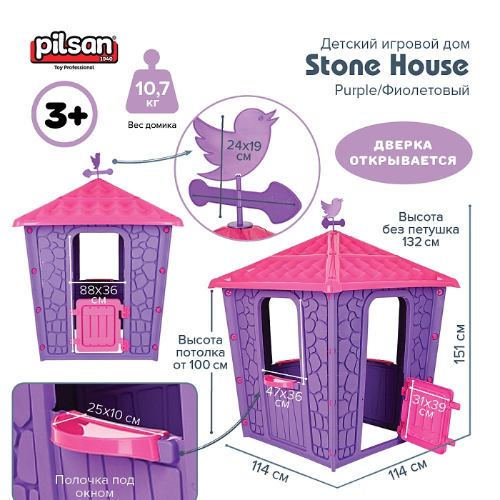 Игровой домик Pilsan Stone House может устанавливаться как на открытом воздухе, так и в жилых помещениях.
