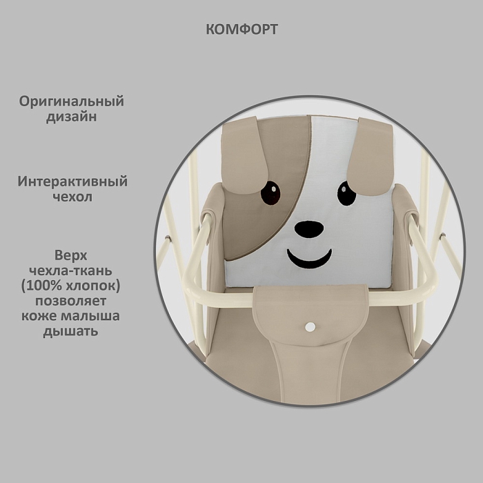 Бампер-поручень для ручек ребёнка. - Широкий мягкий ограничительный ремешок между ножек, для защиты от выскальзывания вниз.