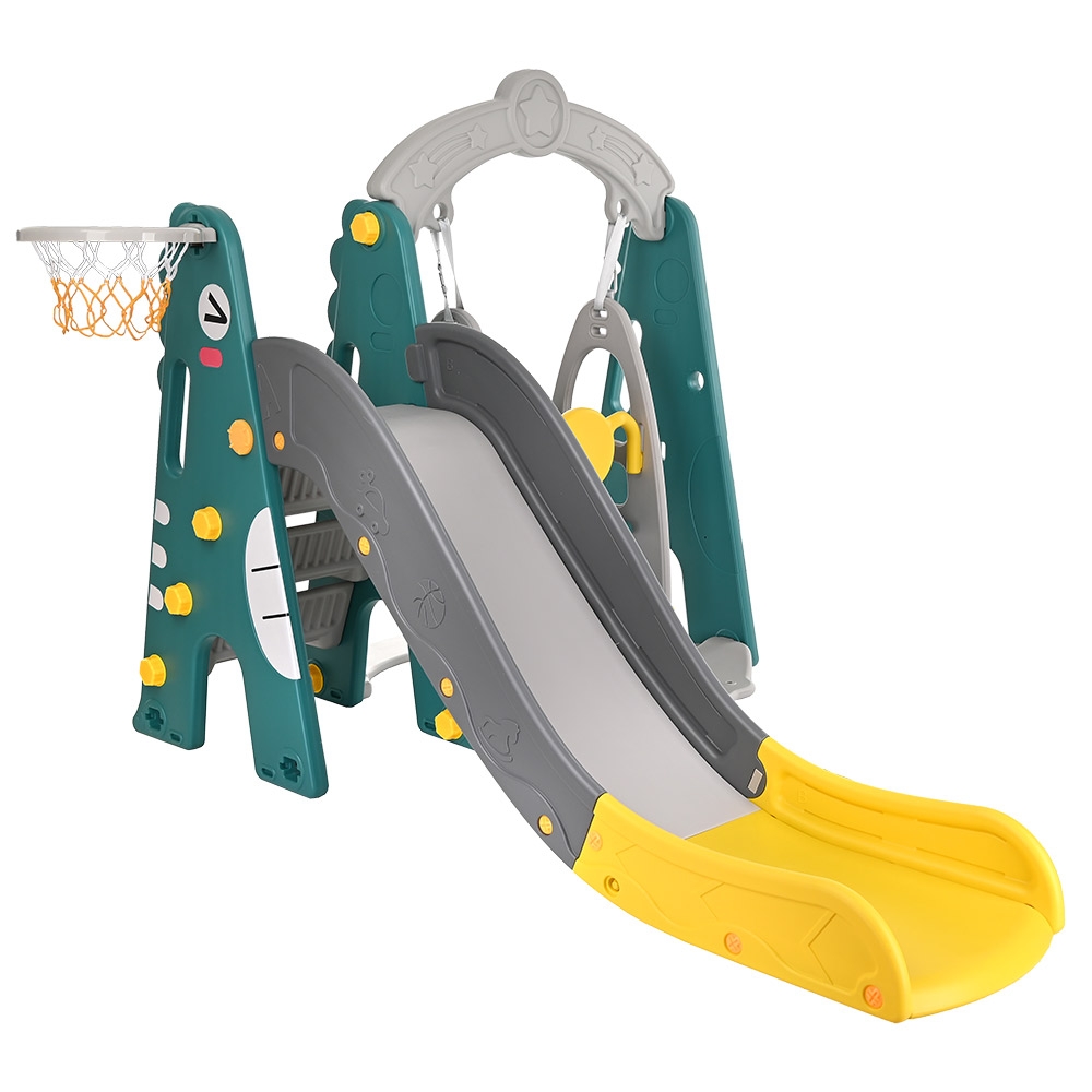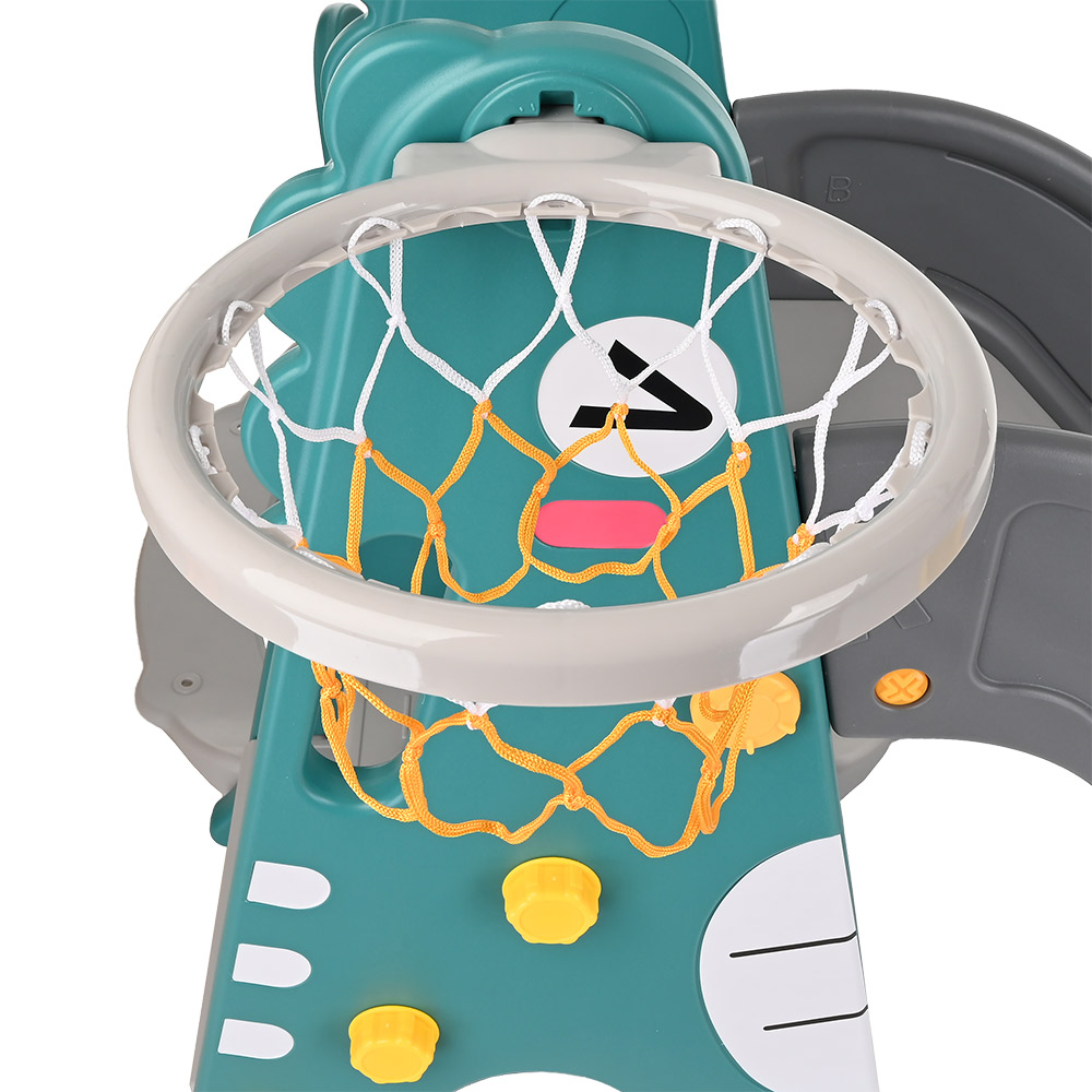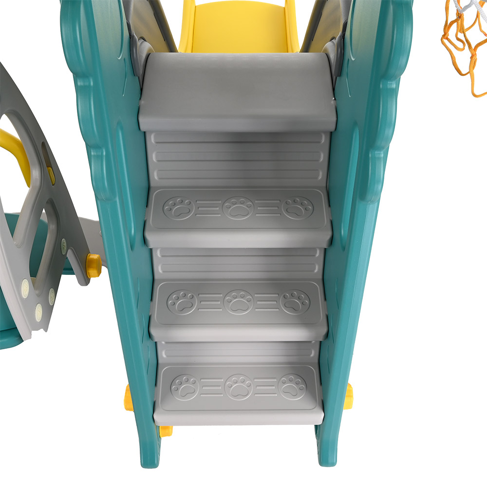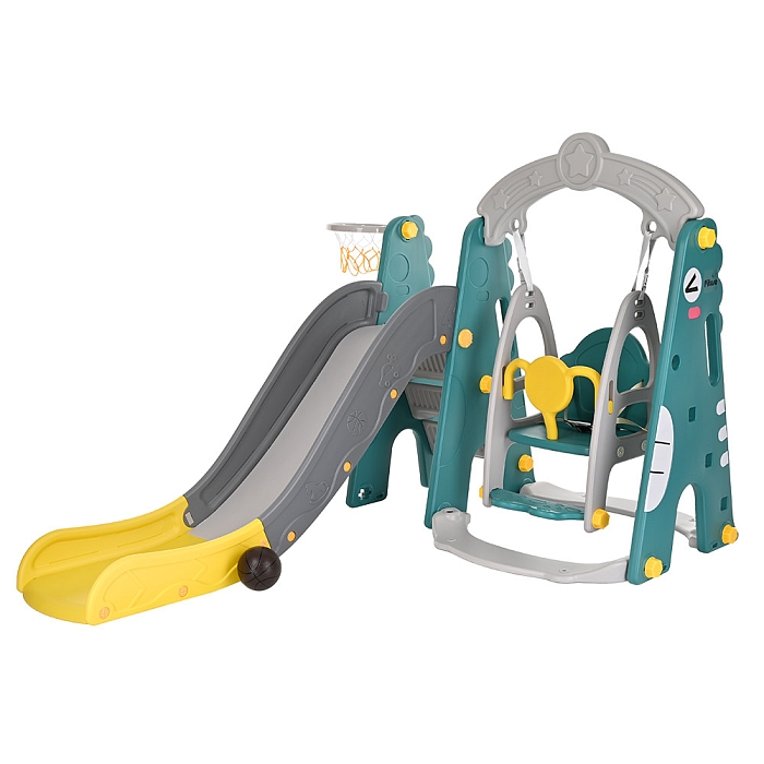 Комплектация: пластиковая горка, качели, лесенка, кольцо баскетбольное (1 шт.), мяч - 1 шт.