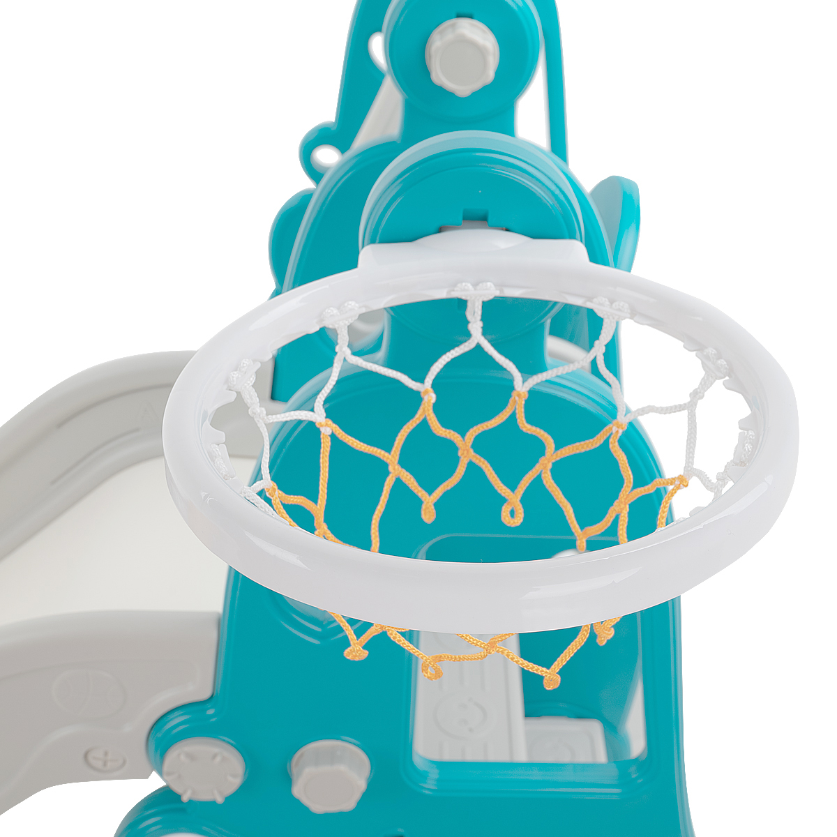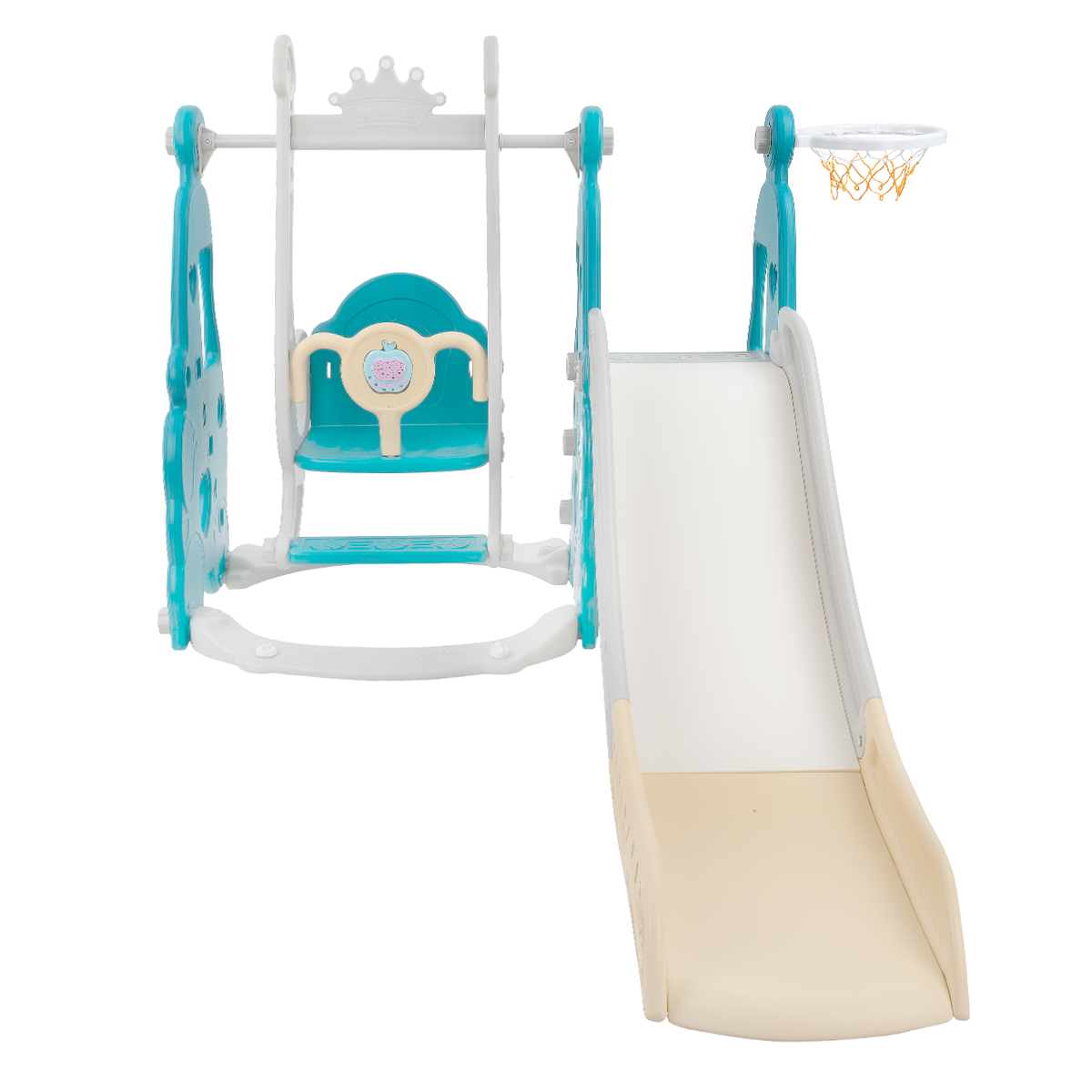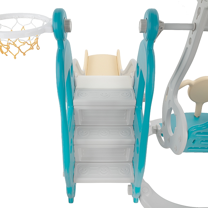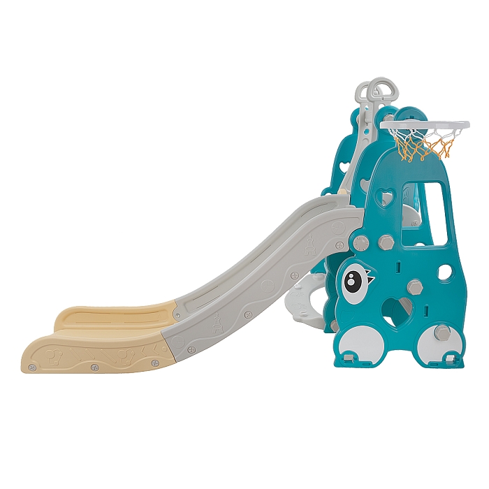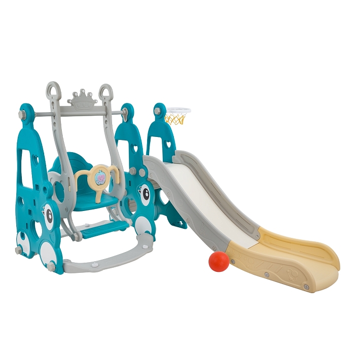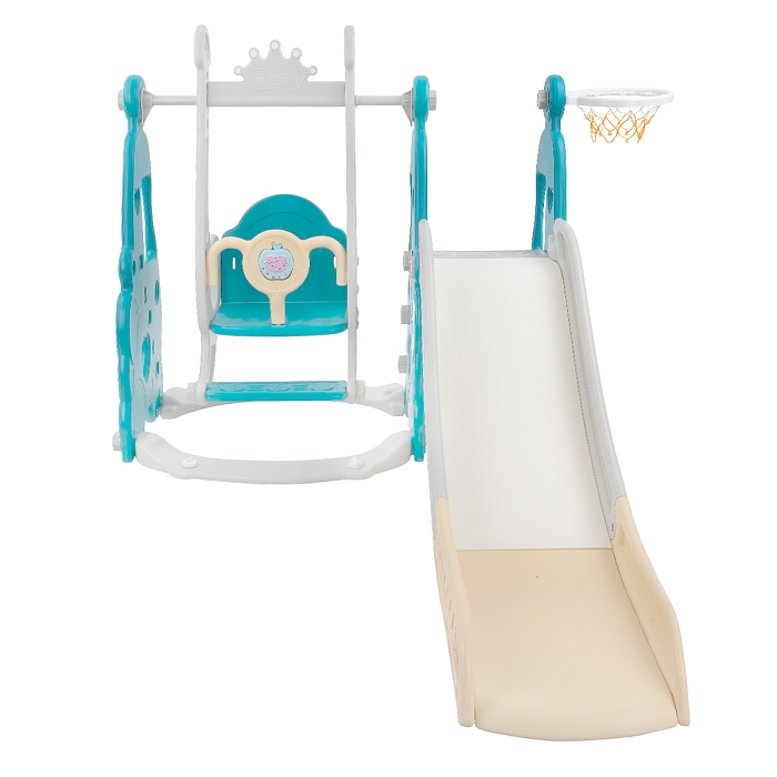 Комплектация: пластиковая горка, качели, кольцо баскетбольное (1 шт.)., муз.элемент