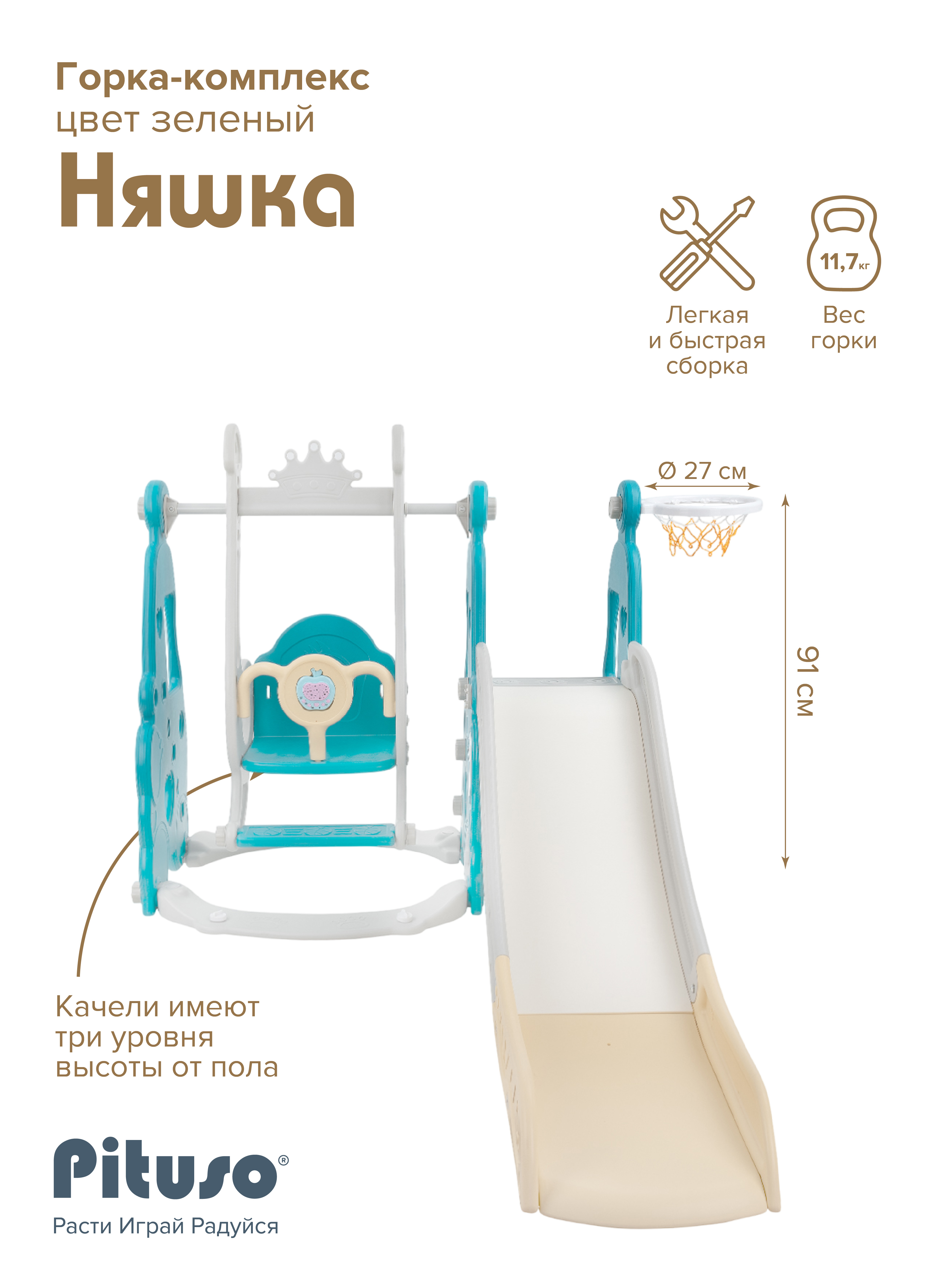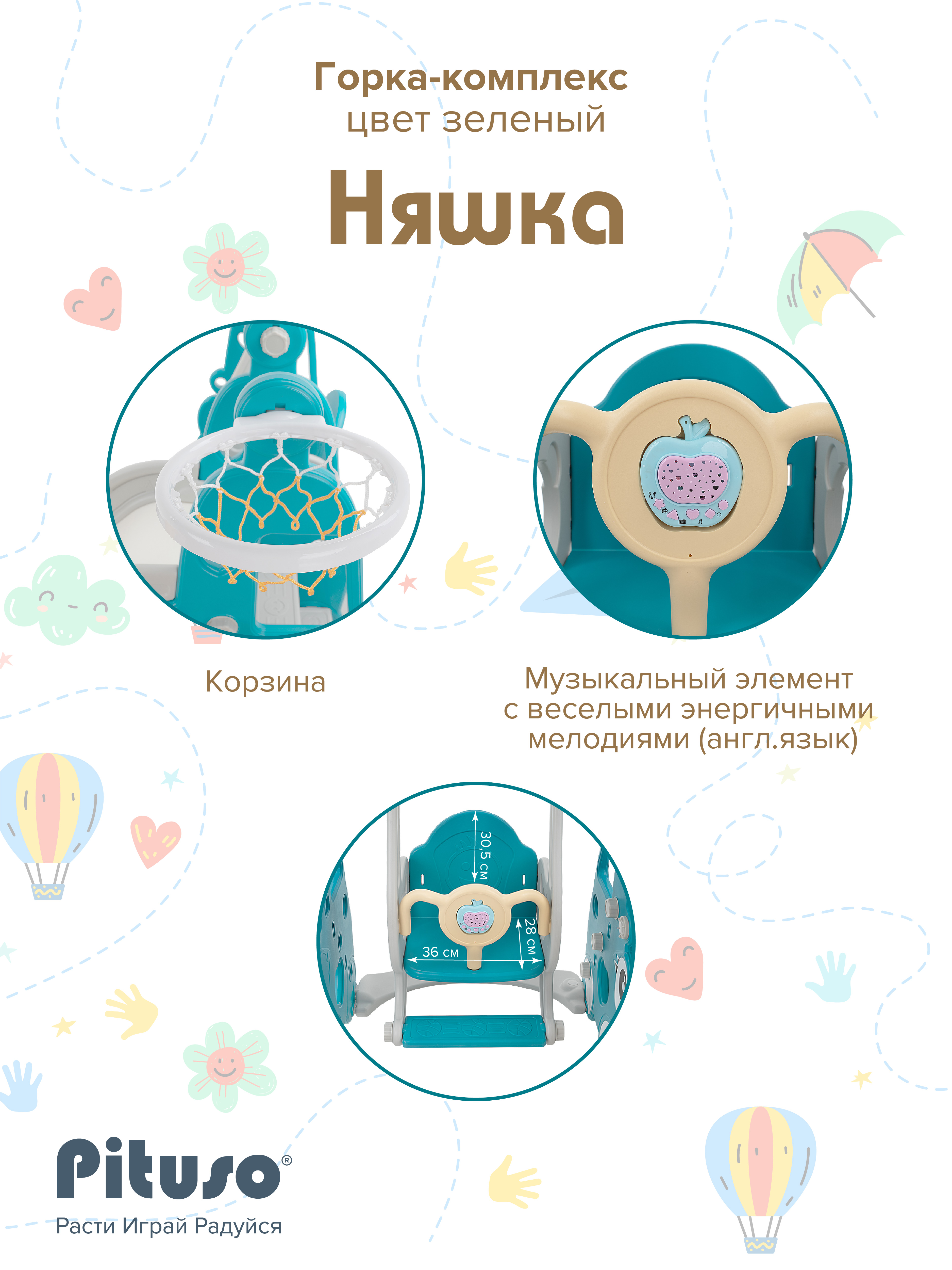 Горка-комплекс Pituso Няшка Green/Зеленый