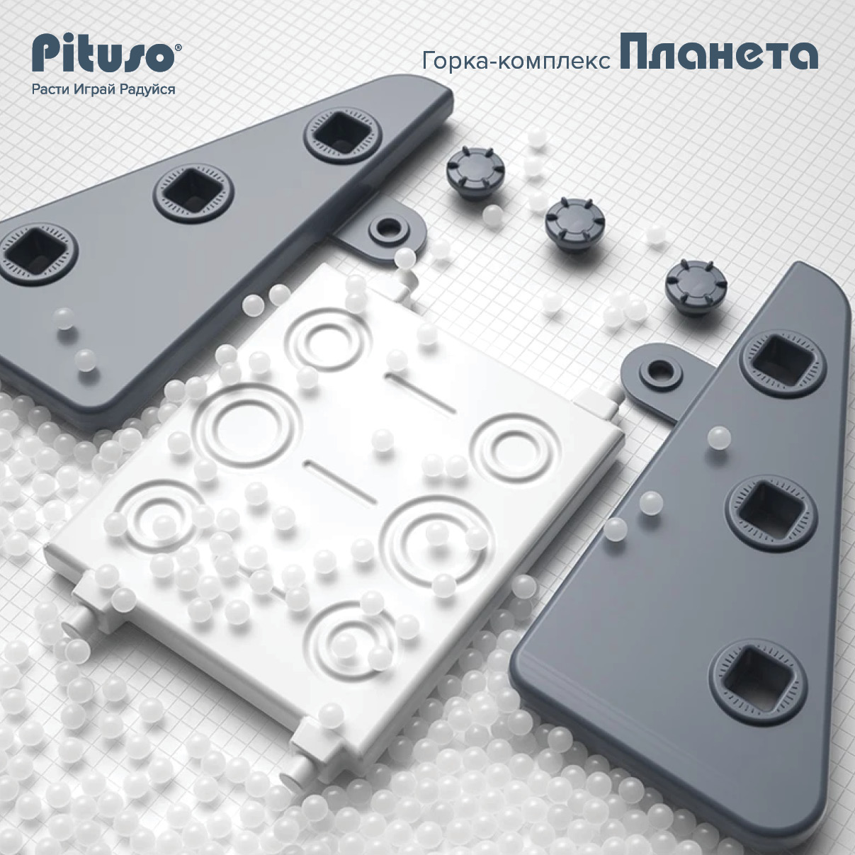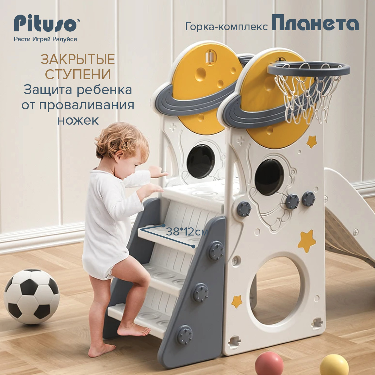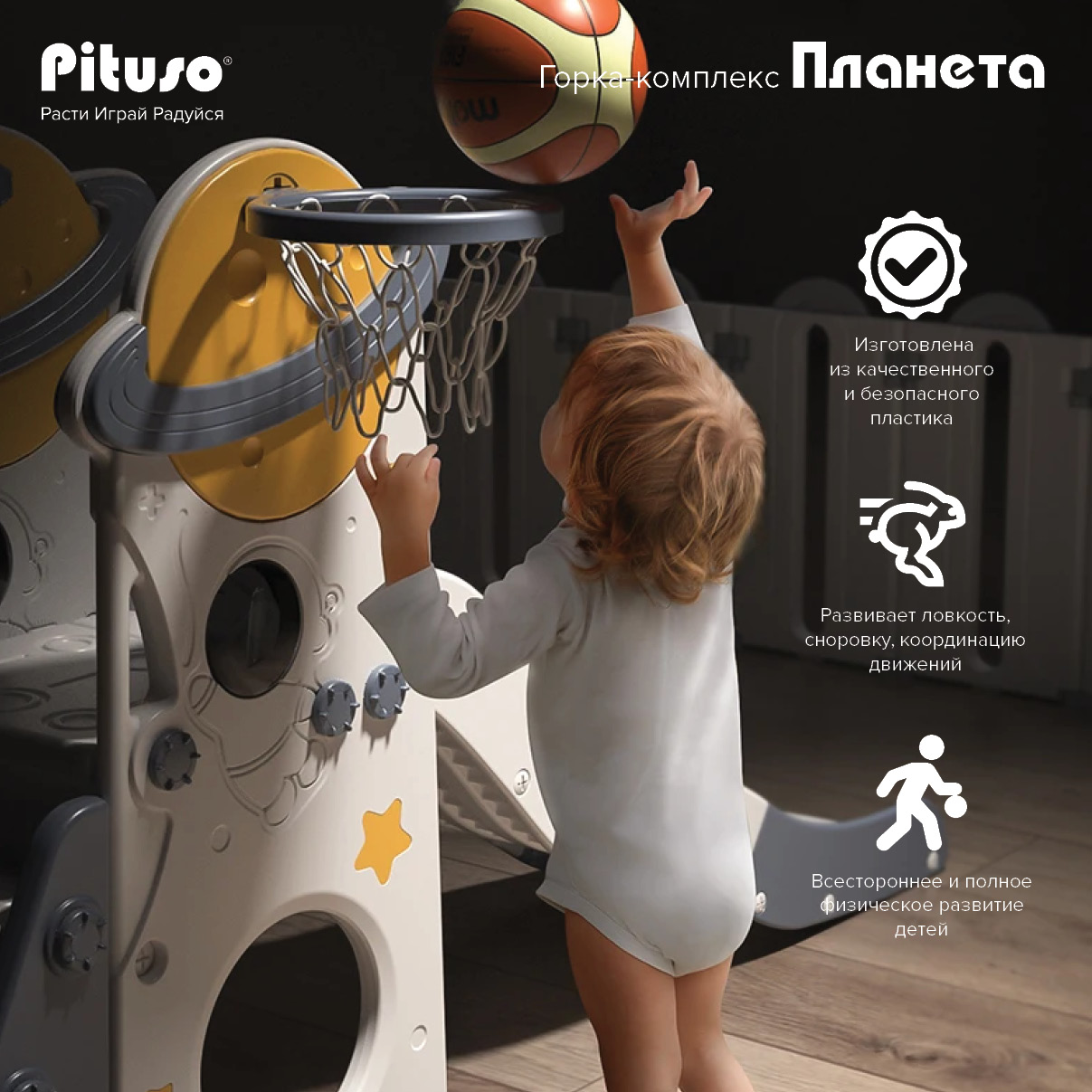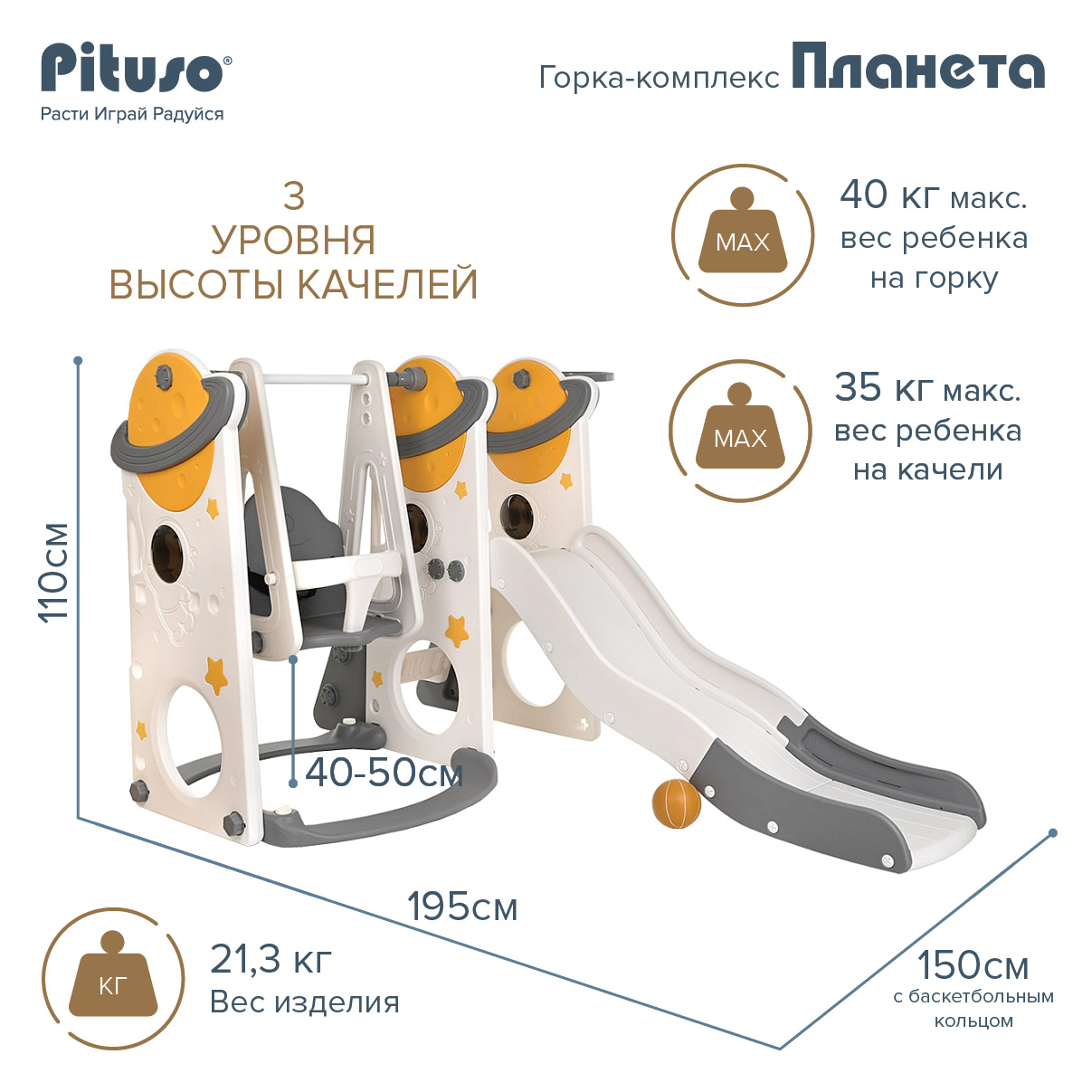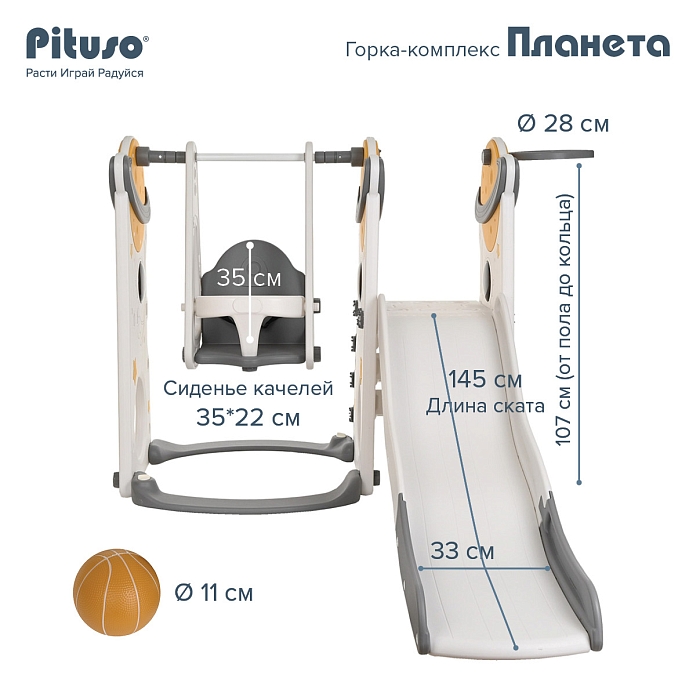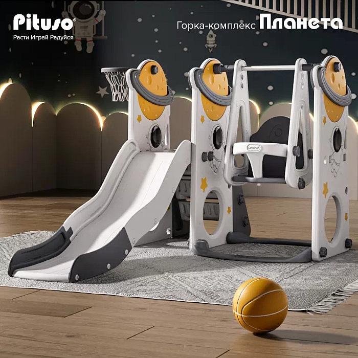 Горка-комплекс Pituso Планета (горка, качели, баскетбольное кольцо) Серый/Белый