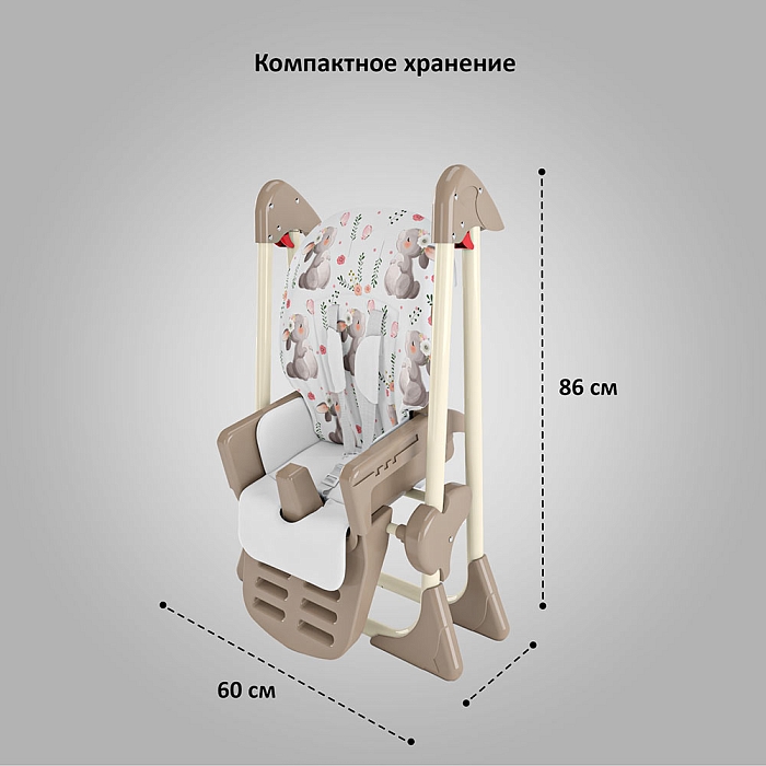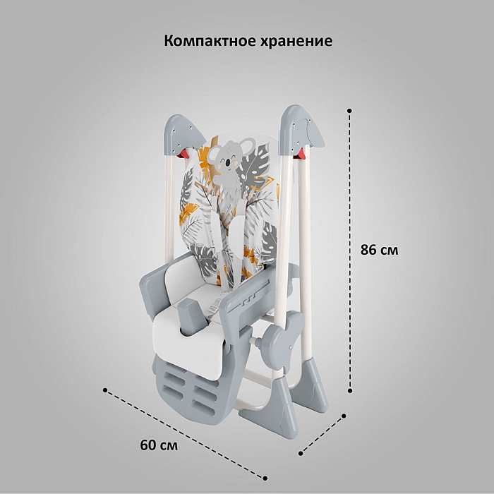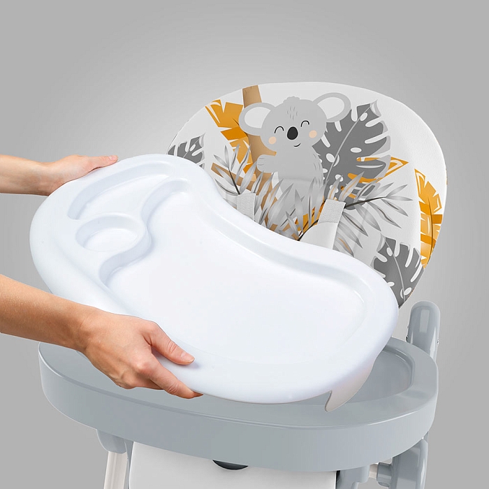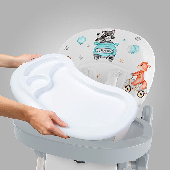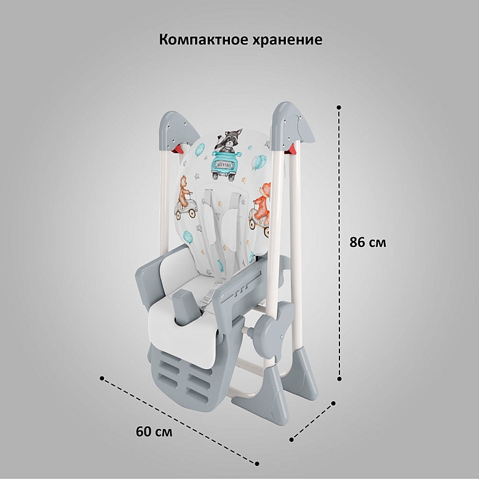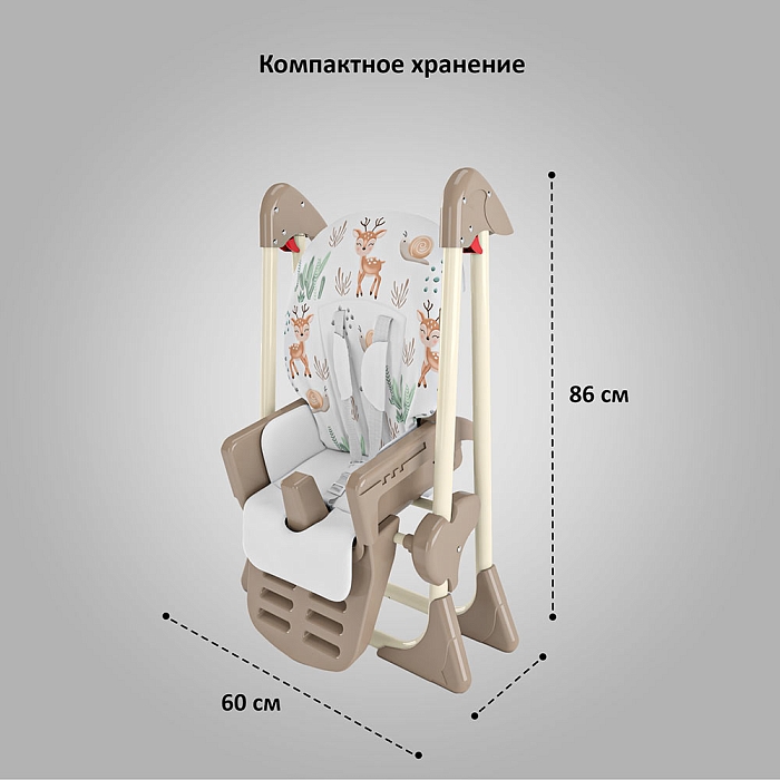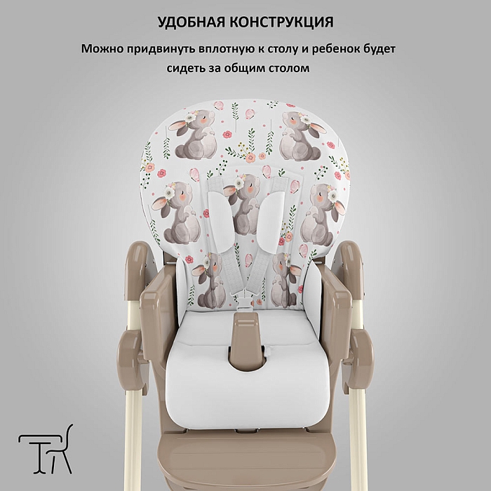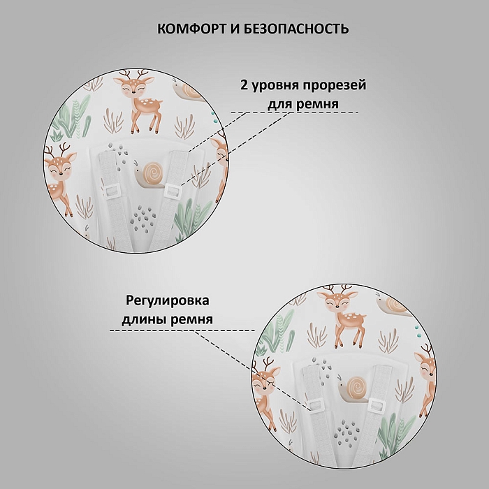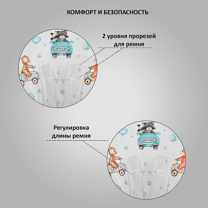 Немаловажной деталью для комфорта является и 3 положения для опоры ног и 5-ти точечный ремень фиксации, который обеспечит Вашему ребенку безопасность, а дополнительный упор не позволит ему съезжать вниз во время игры или еды.