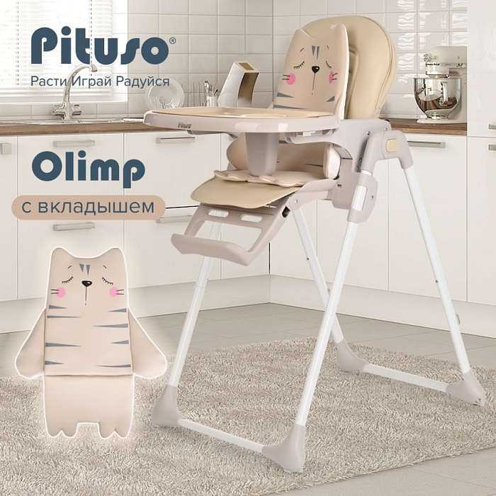 Стул для кормления Pituso Olimp Eco-кожа,вкладыш Milk White/Молочно-белый