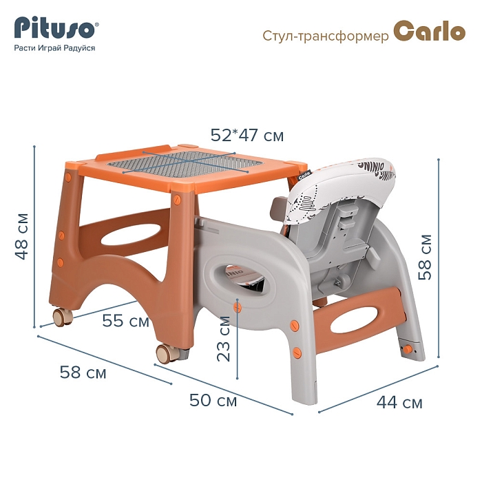 Стул-трансформер Pituso Carlo обновленная модель 2023 года представляет собой идеальную конструкцию 2 в 1.