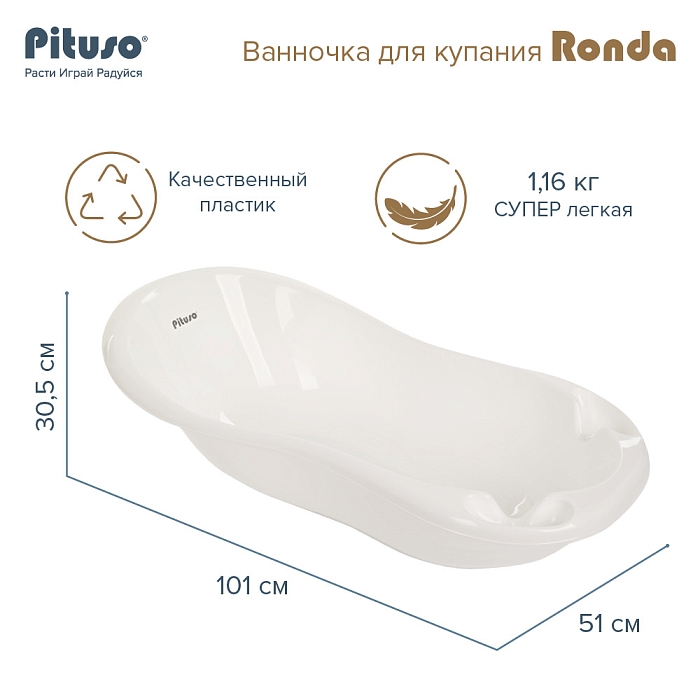 Детская ванна Pituso Ronda со сливом и термометром 101 см Белый