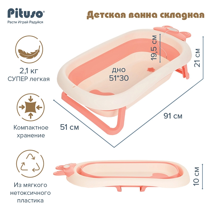 Конструкция ванны отлично продумана для максимально быстрого и легкого купания малыша. Ванна устойчиво держится на поверхности благодаря прочным пластиковым ножкам.