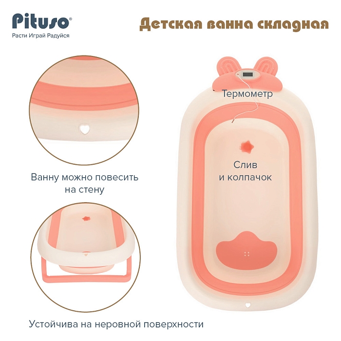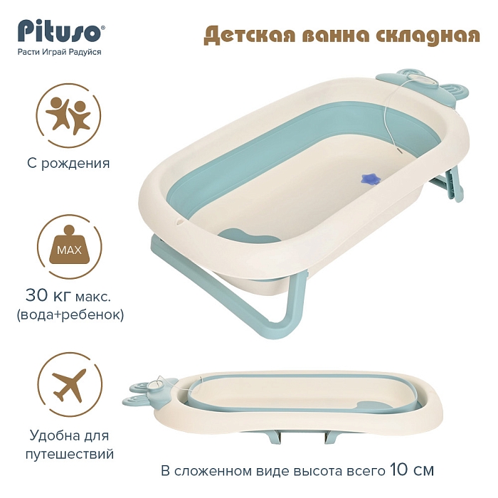 Детская ванна складная Pituso (встроенный термометр) Blue/Ниагара
