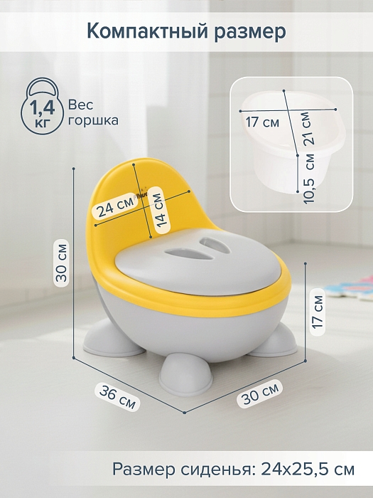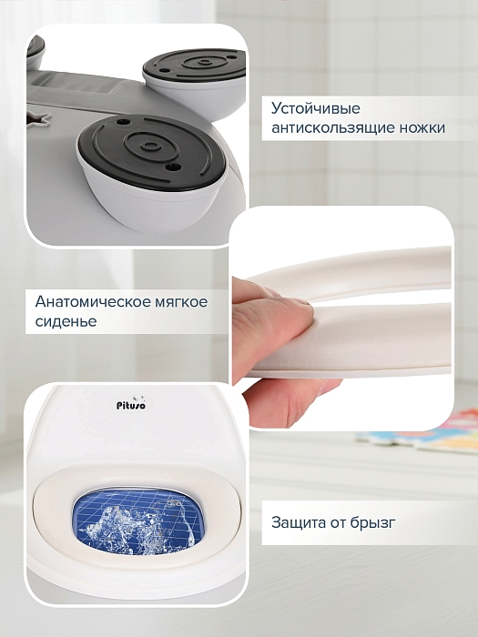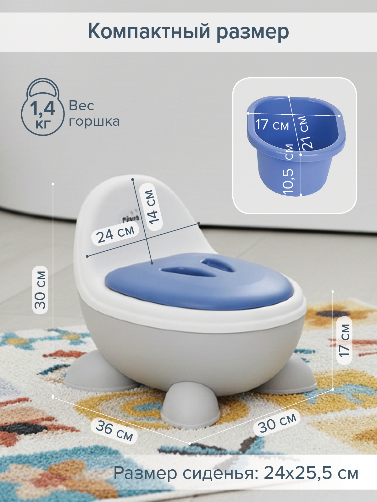 - Детский горшок эргономичной формы на ножках со съемной внутренней частью и с крышкой.