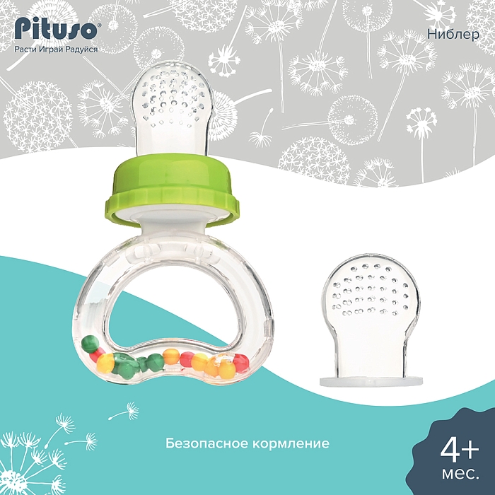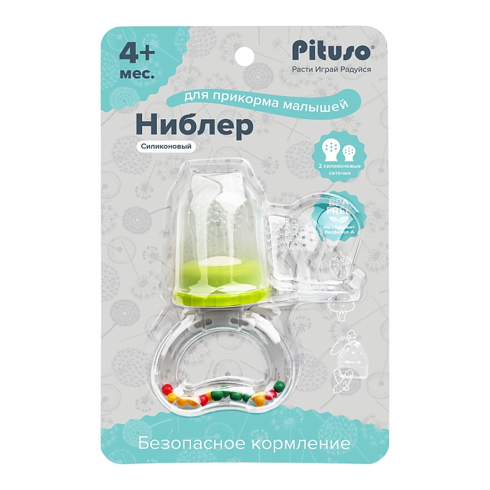 Ниблер с силиконовой сеточкой для прикорма от 4 месяцев позволяет малышу кушать без риска подавиться и безопасно учит малыша разжевыванию пищи.