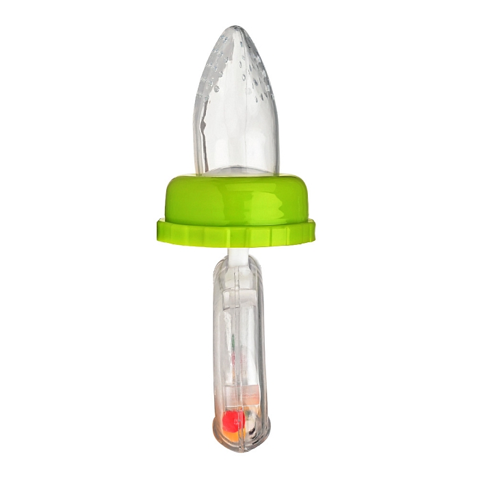Во время прорезывания зубов силиконовый наконечник снимет зуд воспаленных дёсен, успокоит, а защитный колпачок не даст грязи проникнуть в пищу.